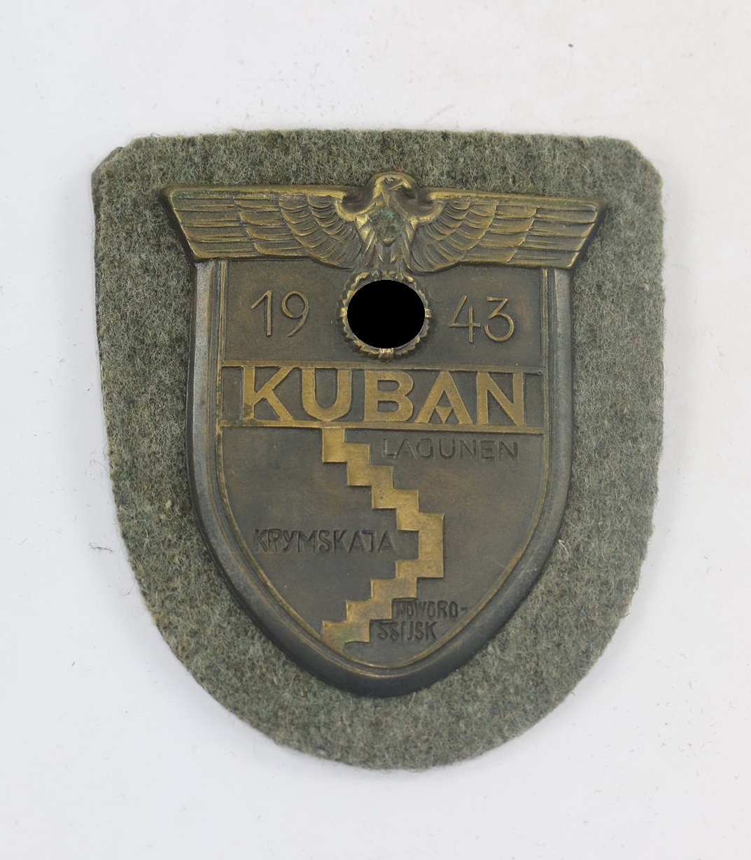 Kuband Schild Jahreszahl 1943, Kubanschlacht, Lagunen, Krymskaja, Noworossijsk, Ärmelschild, Adler mit Hakenkreuz