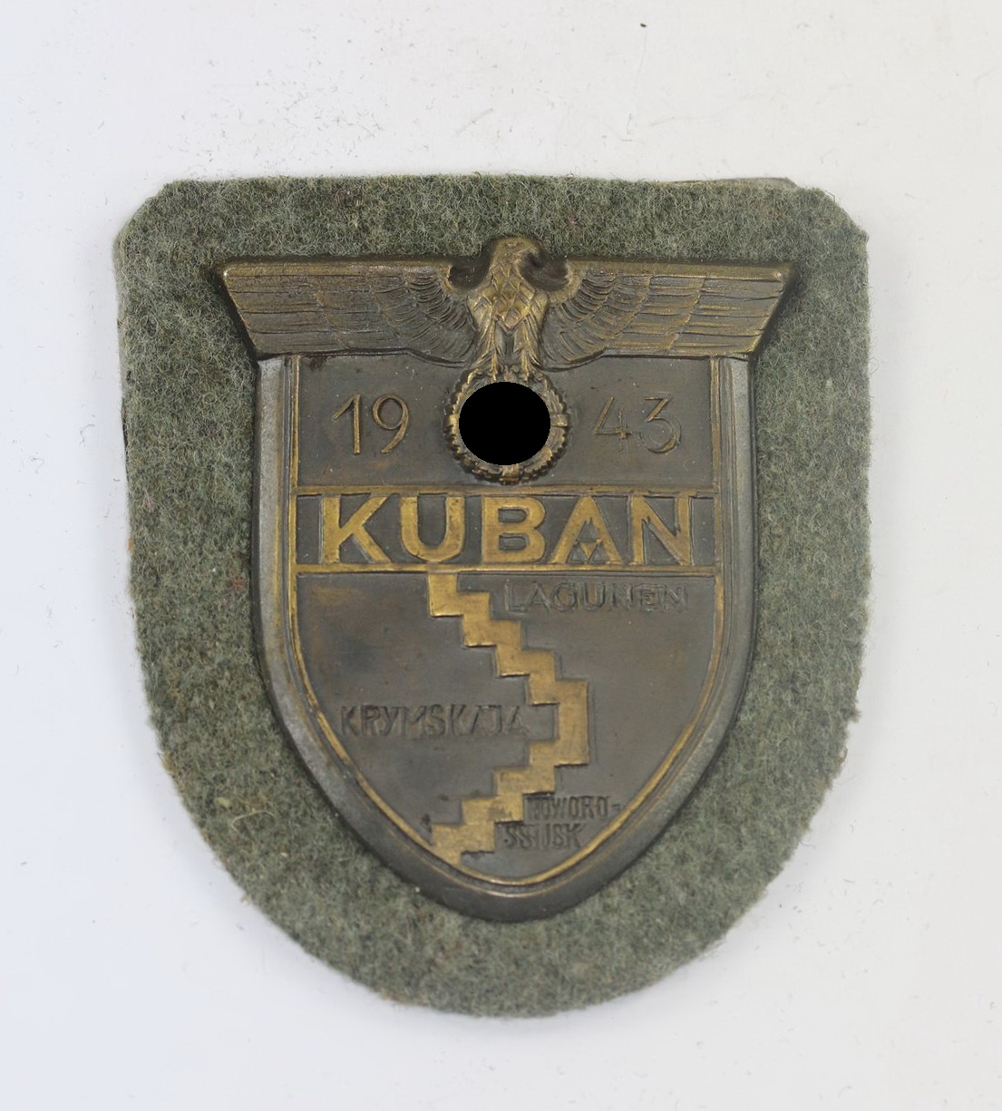 Kuband Schild Jahreszahl 1943, Kubanschlacht, Lagunen, Krymskaja, Noworossijsk, Ärmelschild, Adler mit Hakenkreuz