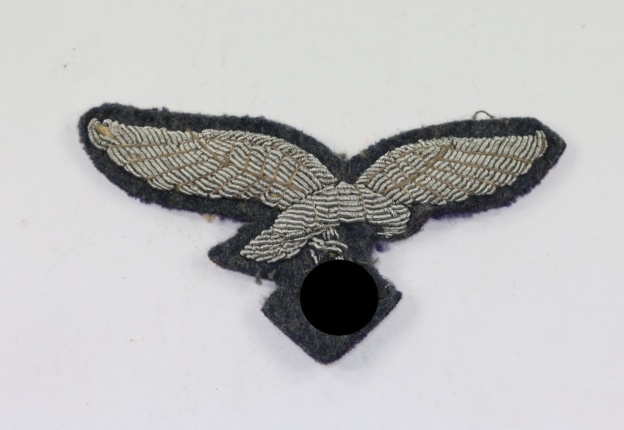 Metallfaden handgestickt, sehr guter, nur leicht getragener Zustand. Der Adler das 2. Modell der Luftwaffe.