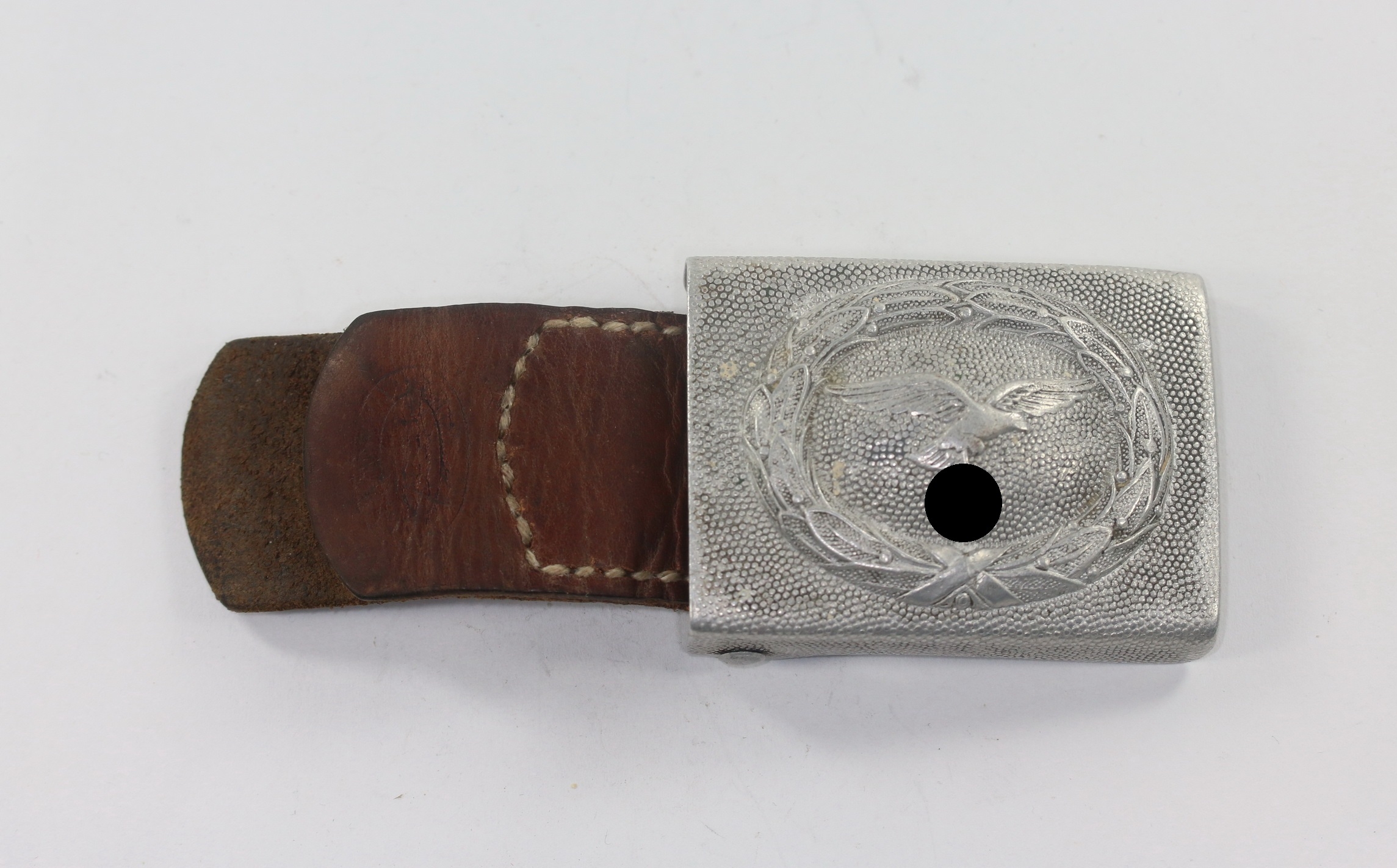 Luftwaffe, Koppelschloss für Mannschaften, Hst. JD, Aluminium, mit Lederlasche