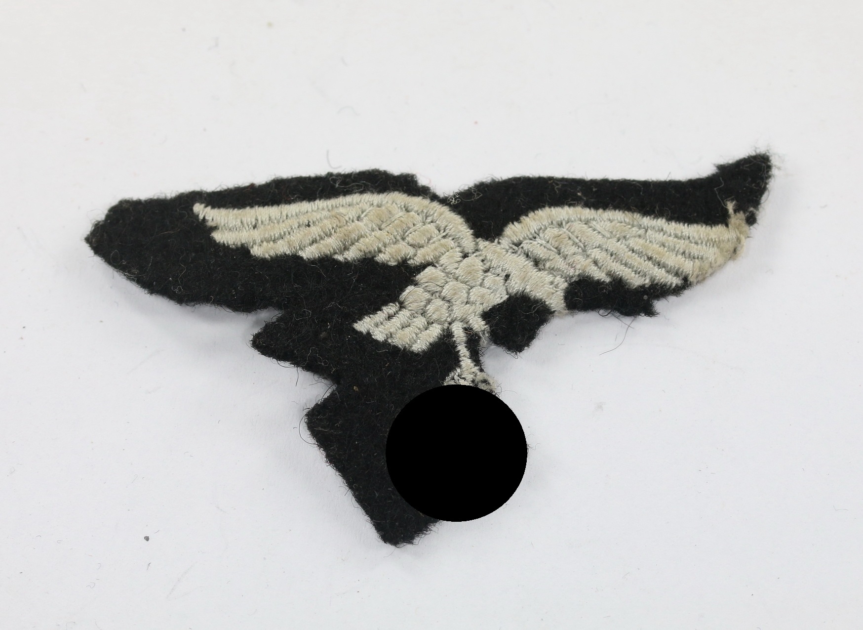 Maschinengestickt auf schwarzen Tuch, sehr guter, nur leicht getragener Zustand.