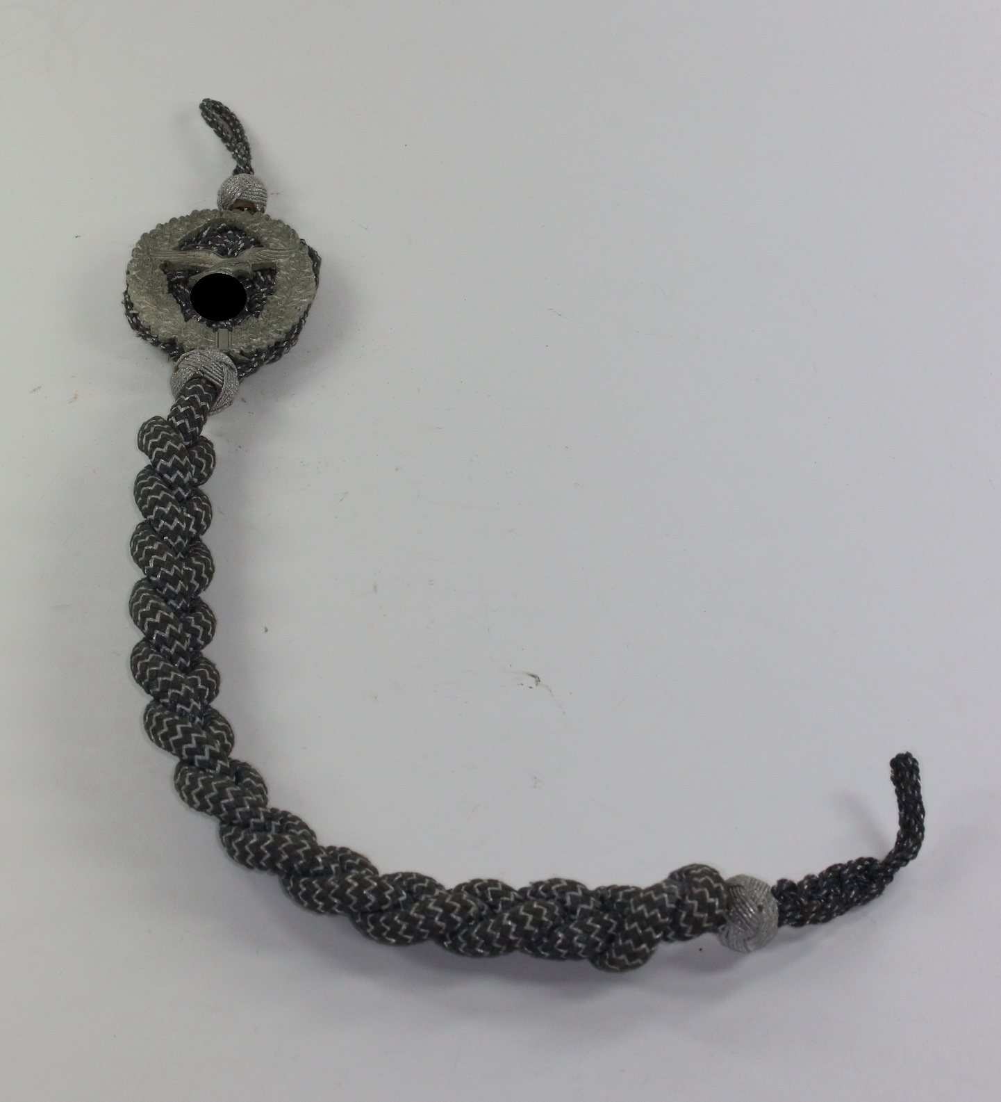 Sehr guter, leicht getragener Zustand. Blau mit silbernen Durchzügen, die Auflage aus Aluminium, alle Splinte vollständig und einwandfrei.