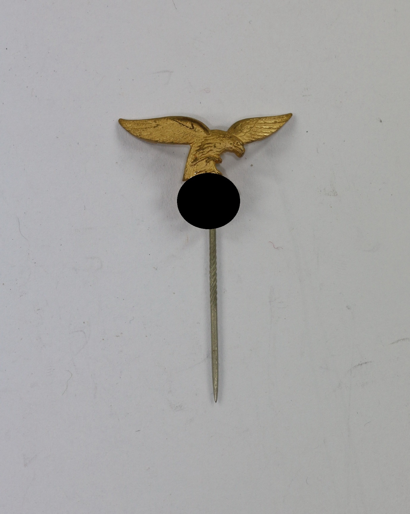 Buntmetall vergoldet, excellenter, ungetragener Zustand. Ohne Hersteller, aber eine bekannte Variante. An langer Nadel.