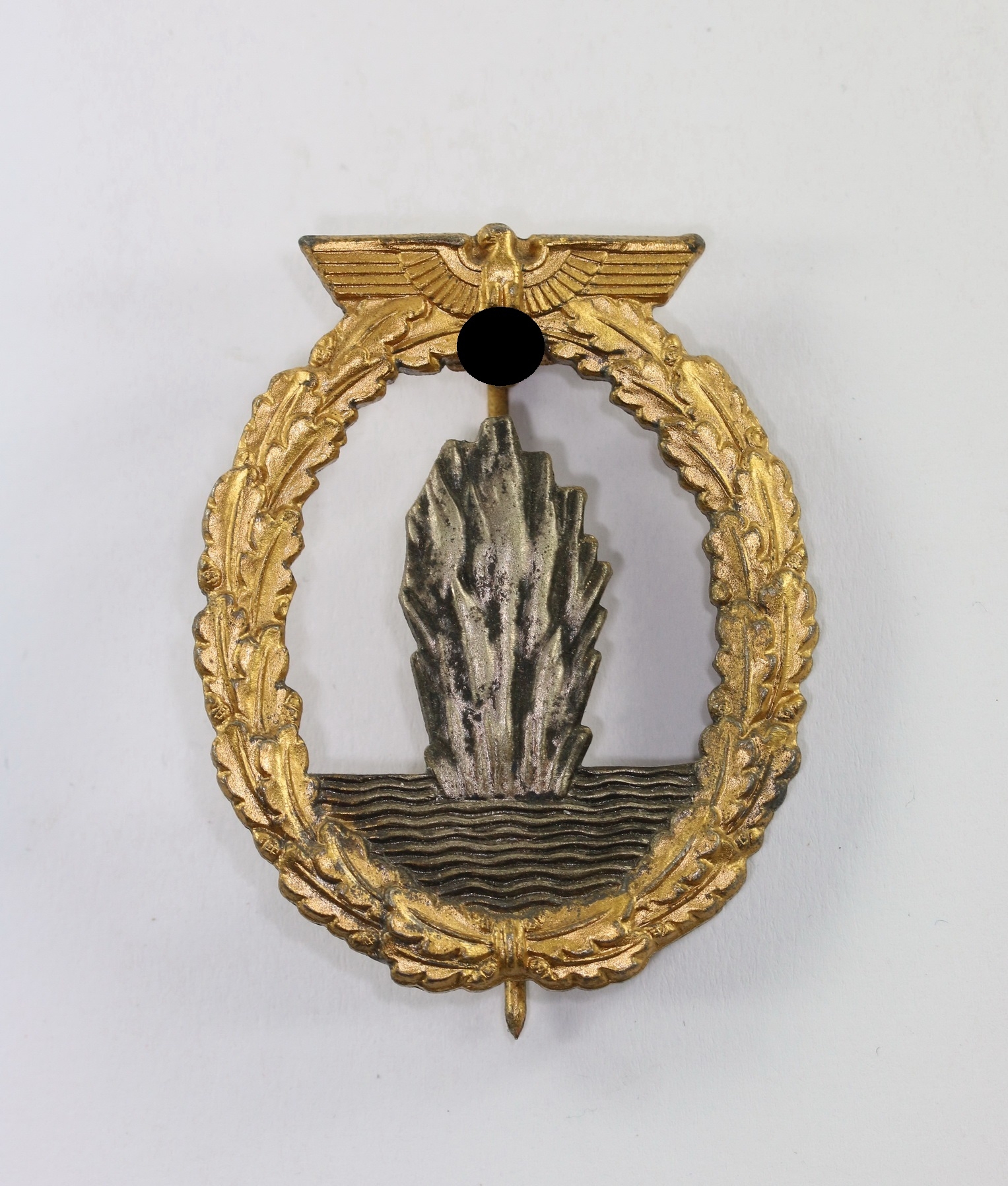Zink, sehr guter, ungetragener Zustand. Mit Hersteller „R.S.“ für die Firma Rudolf Souval, Wien. Siehe Weber/Skora, Die Kriegsabzeichen der Kriegsmarine.