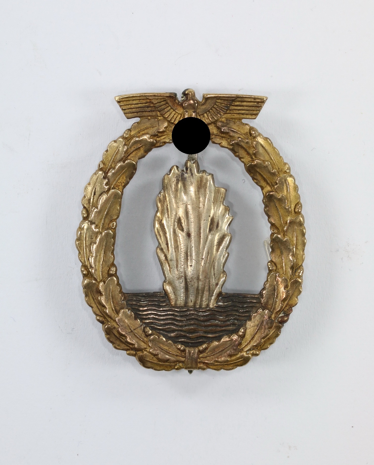 Buntmetall, sehr guter, nur leicht getragener Zustand. Mit Hersteller „A“ für die Firma Assmann & Sohn, Lüdenscheid. Siehe Weber/Skora, Die Kriegsabzeichen der Kriegsmarine.