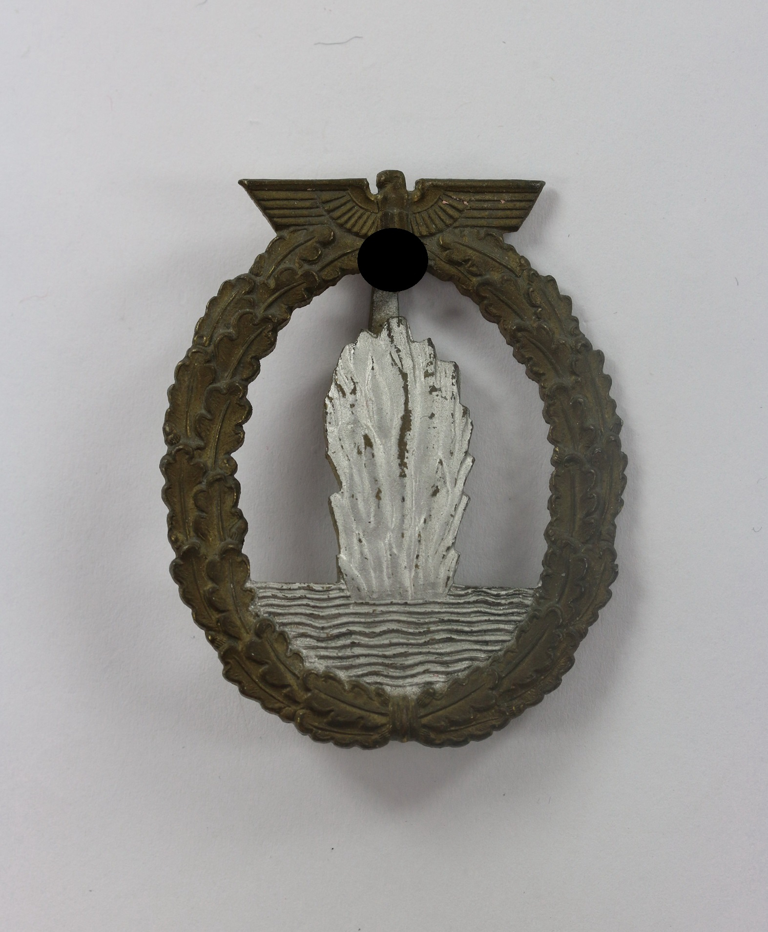 Zink, sehr guter, leicht getragener Zustand. Mit Hersteller „R.K.“ für die Firma Rudolf Karneth, Gablonz. Siehe GCA-Datenbank.