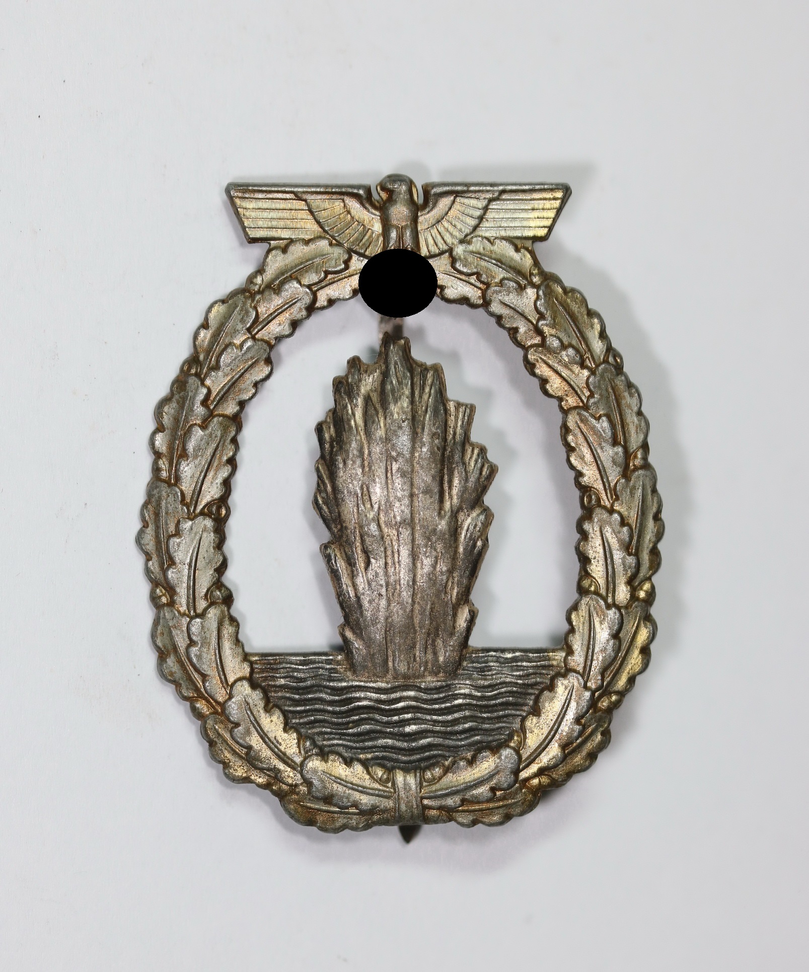 Zink, sehr guter, ungetragener Zustand. Mit Hersteller „Schwerin Berlin“. Siehe Weber/Skora, Die Kriegsabzeichen der Kriegsmarine, S. 266/267, Typ 3.04, Variante 4.