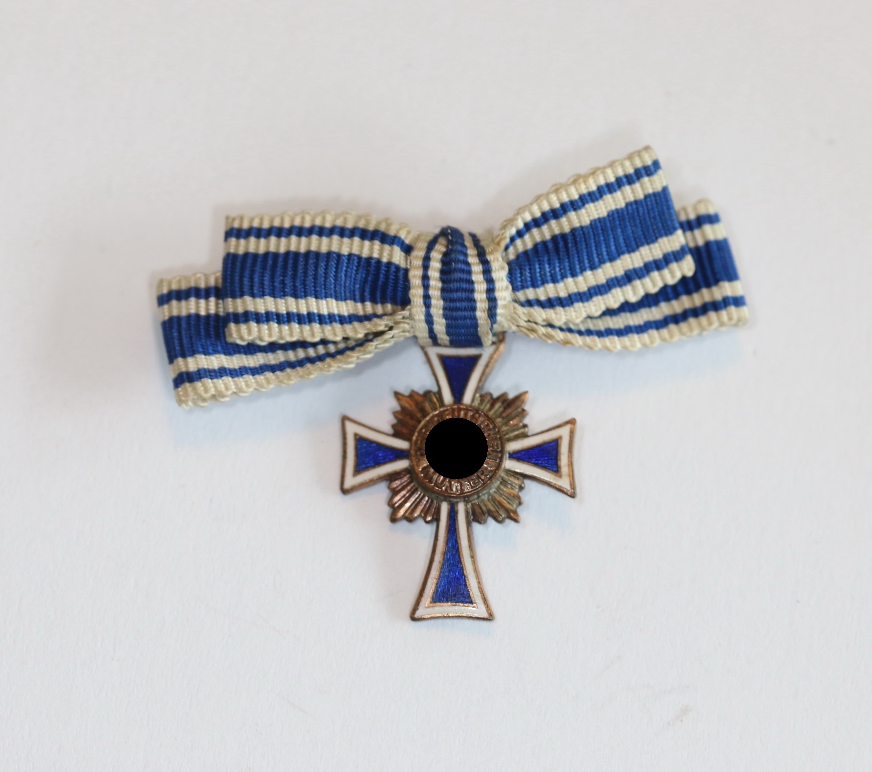 Sehr guter, nur leicht getragener Zustand. Die Emaille ohne Fehler, mit vollständiger Bronzierung. Ohne Hersteller, aber eine bekannte Variante. An Schleife mit Tragenadel.