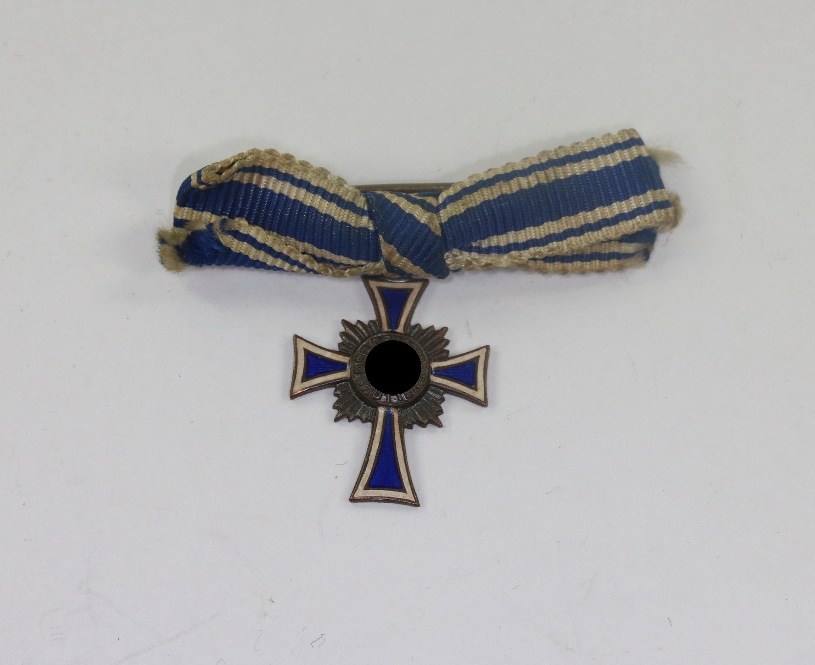 Sehr guter, nur leicht getragener Zustand. Die Emaille ohne Fehler, mit vollständiger Bronzierung. Rückseitig ohne Schrift(!). An Schleife mit Tragenadel.