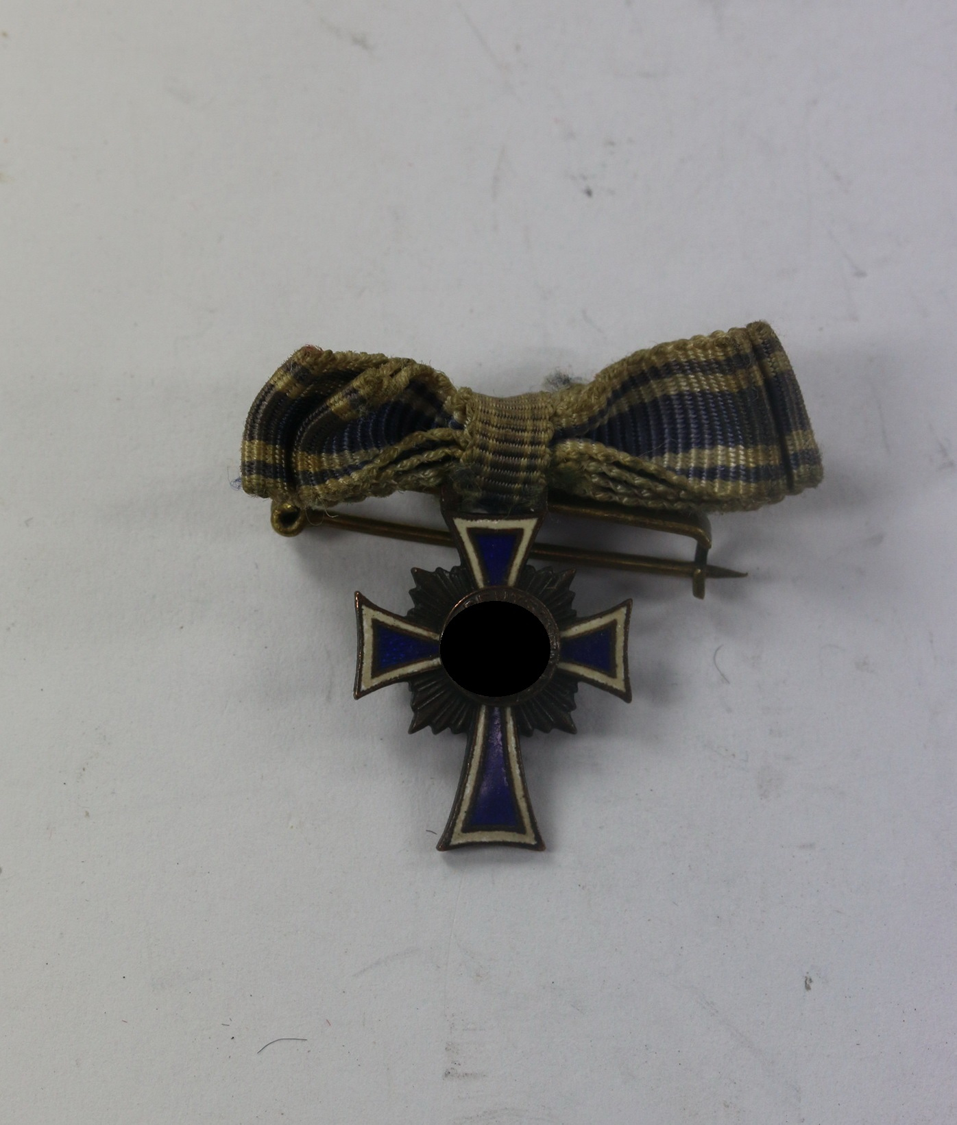 Sehr guter, leicht getragener Zustand. Die Emaille ohne Fehler, mit vollständiger Bronzierung. Ohne Hersteller, aber eine bekannte Variante. An Schleife mit Tragenadel.