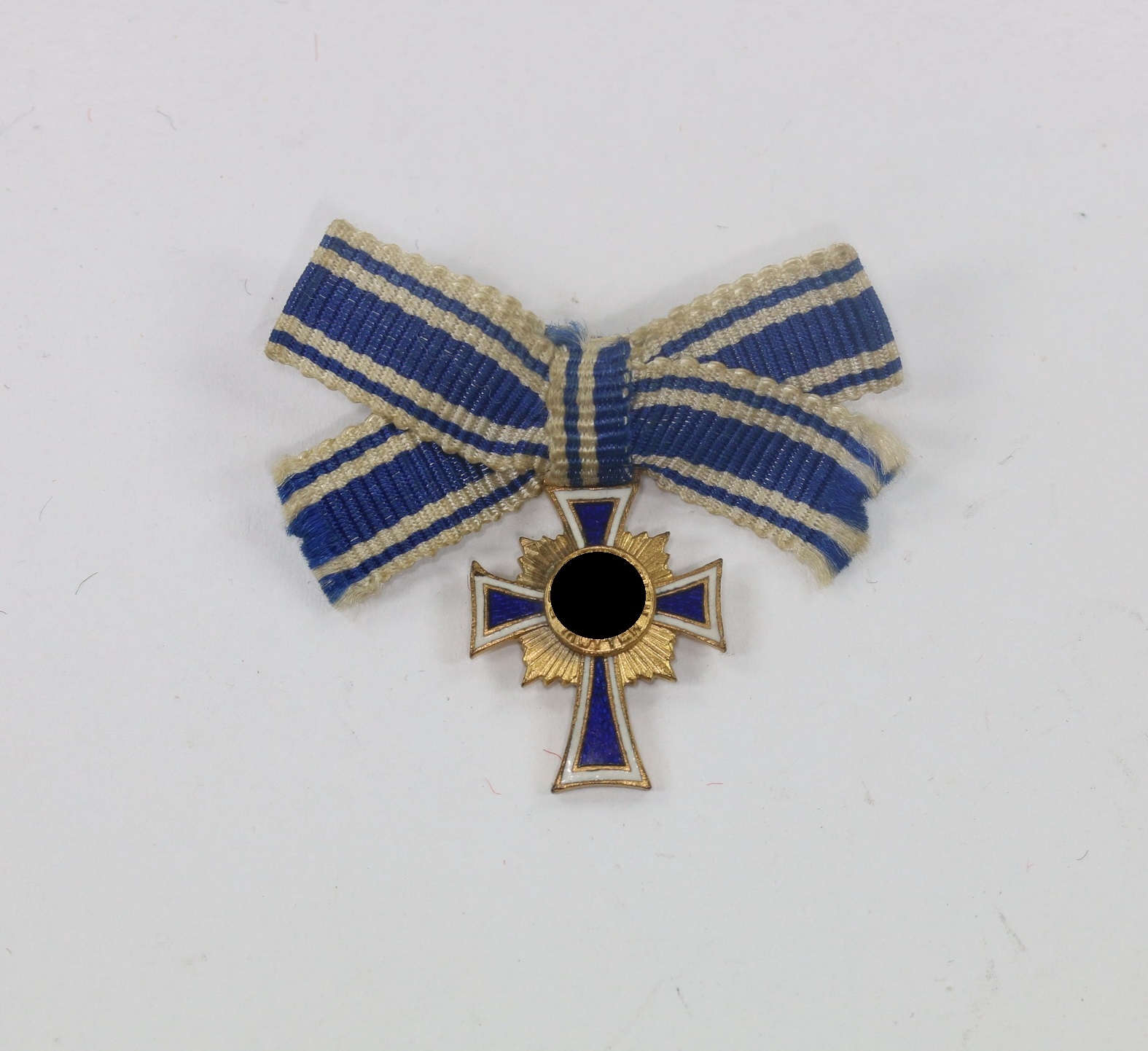 Miniatur Mutterkreuz in Gold an Schleife, Hst. L/15