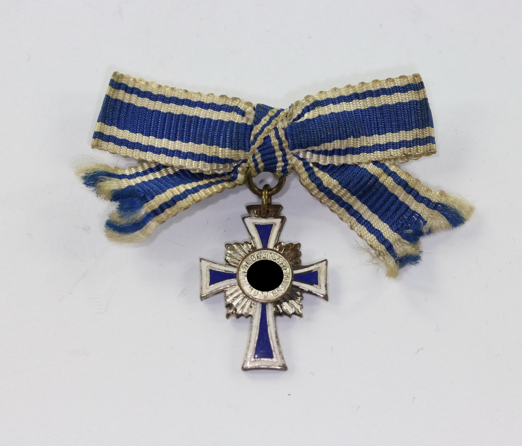 Miniatur Mutterkreuz in Silber an Schleife, Hst. L/57