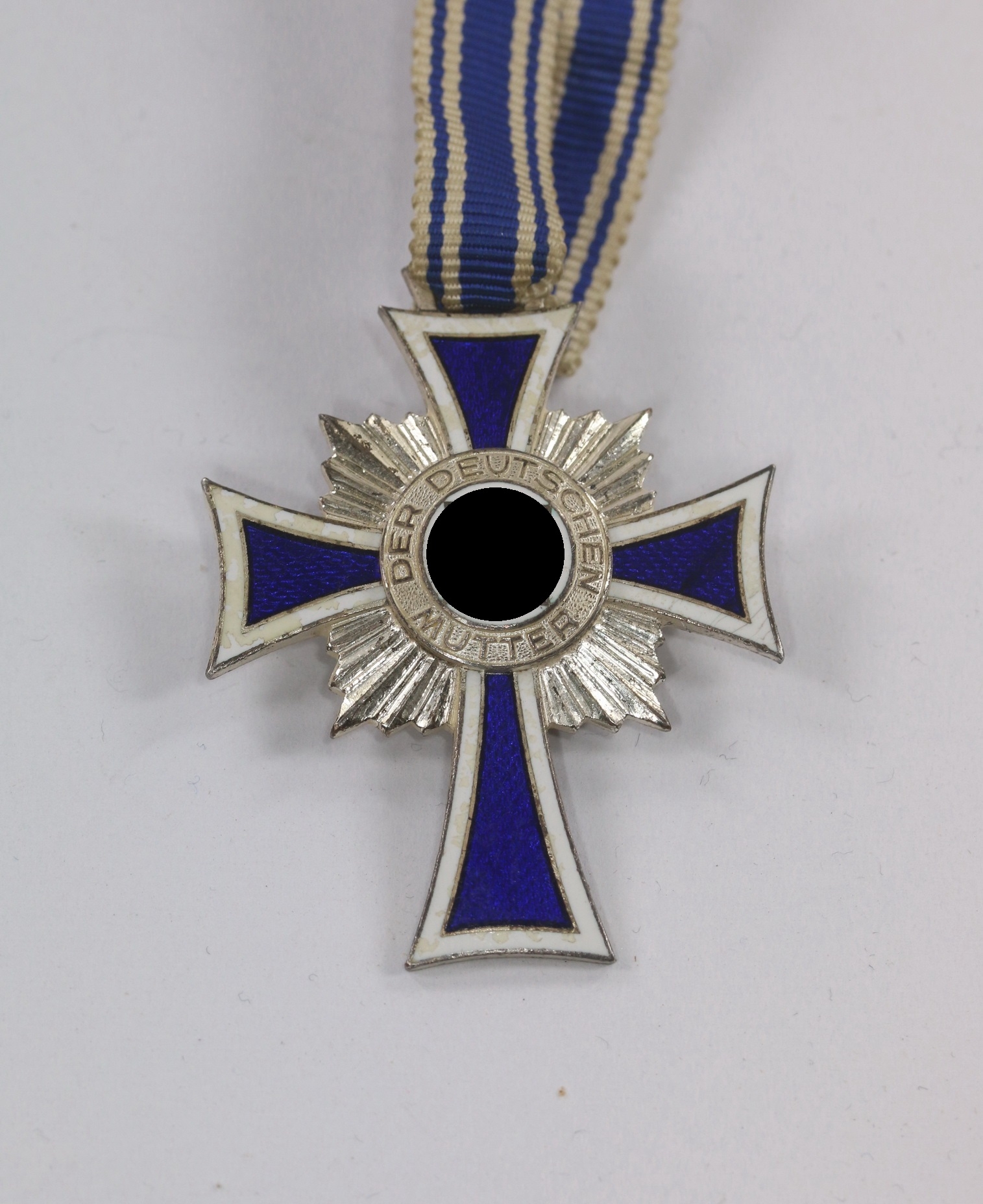 Buntmetall, sehr guter, nur minimal getragener Zustand. Die Emaille ohne Fehlern, die Versilberung vollständig vorhanden. Ohne Hersteller, aber eine bekannte Variante. Mit Trageband in voller Länge.