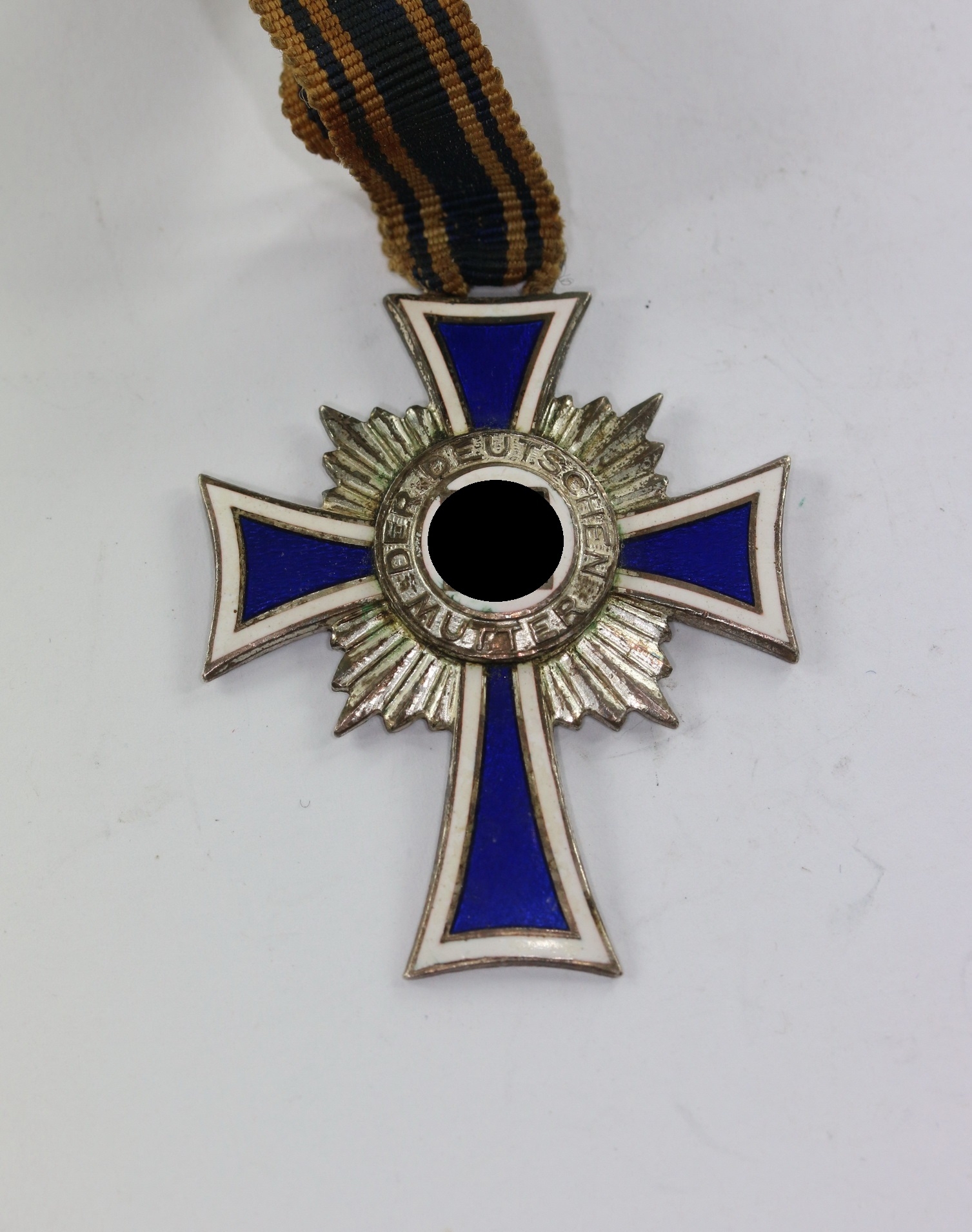 Buntmetall, sehr guter, ungetragener Zustand. Die Emaille ohne Fehler, die Versilberung vollständig vorhanden. Ohne Hersteller, aber eine bekannte Variante. Mit vernähten Trageband in voller Verleihungslänge.
