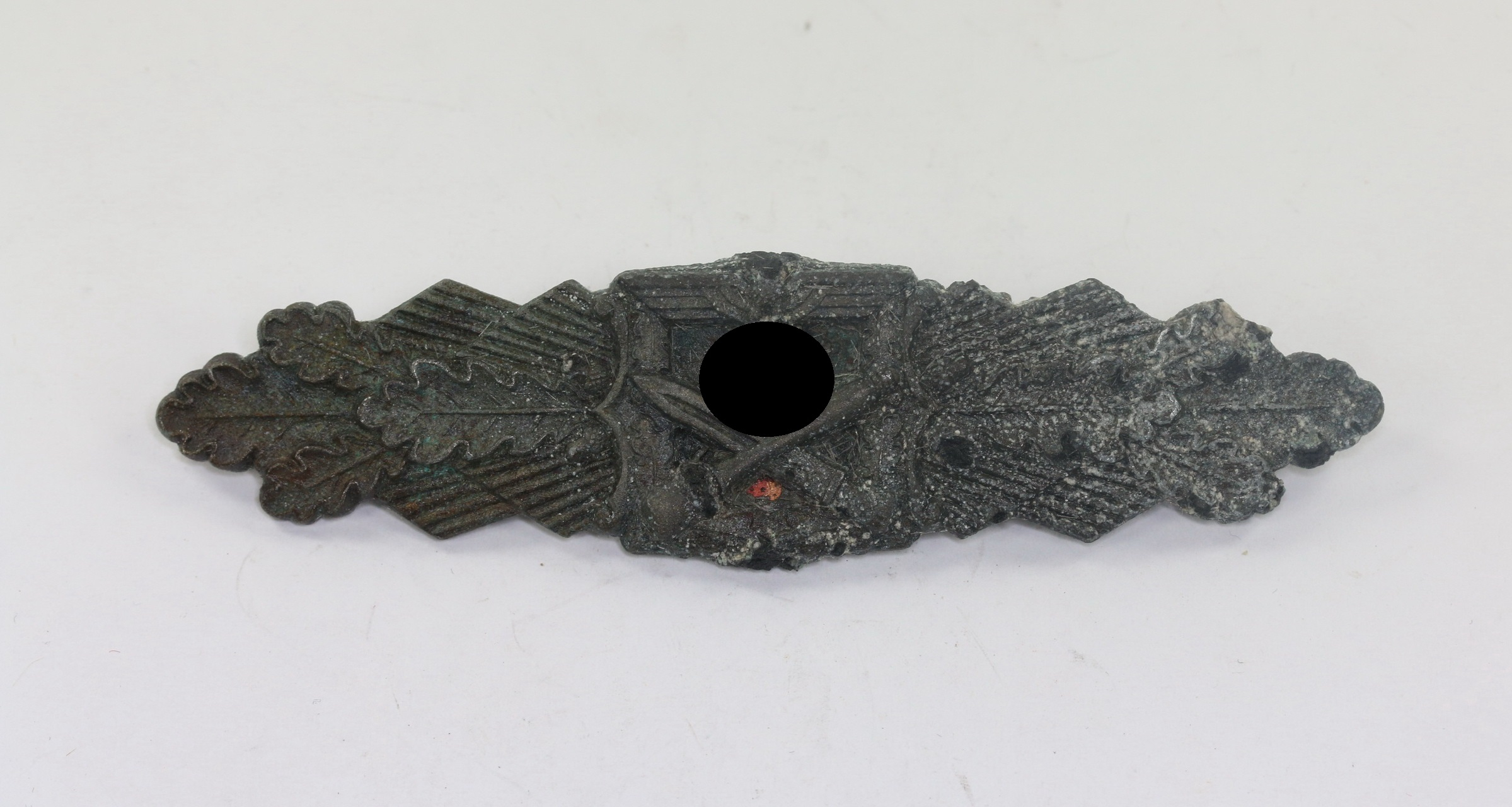 Zink, sehr guter, leicht getragener Zustand. Mit stärkeren Alters- und Lagerspuren, die Nadel fest(!), sonst aber einwandfrei. Mit unmagnetischen Cupal Plättchen. Mit Hersteller „C.E. Juncker Berlin“.