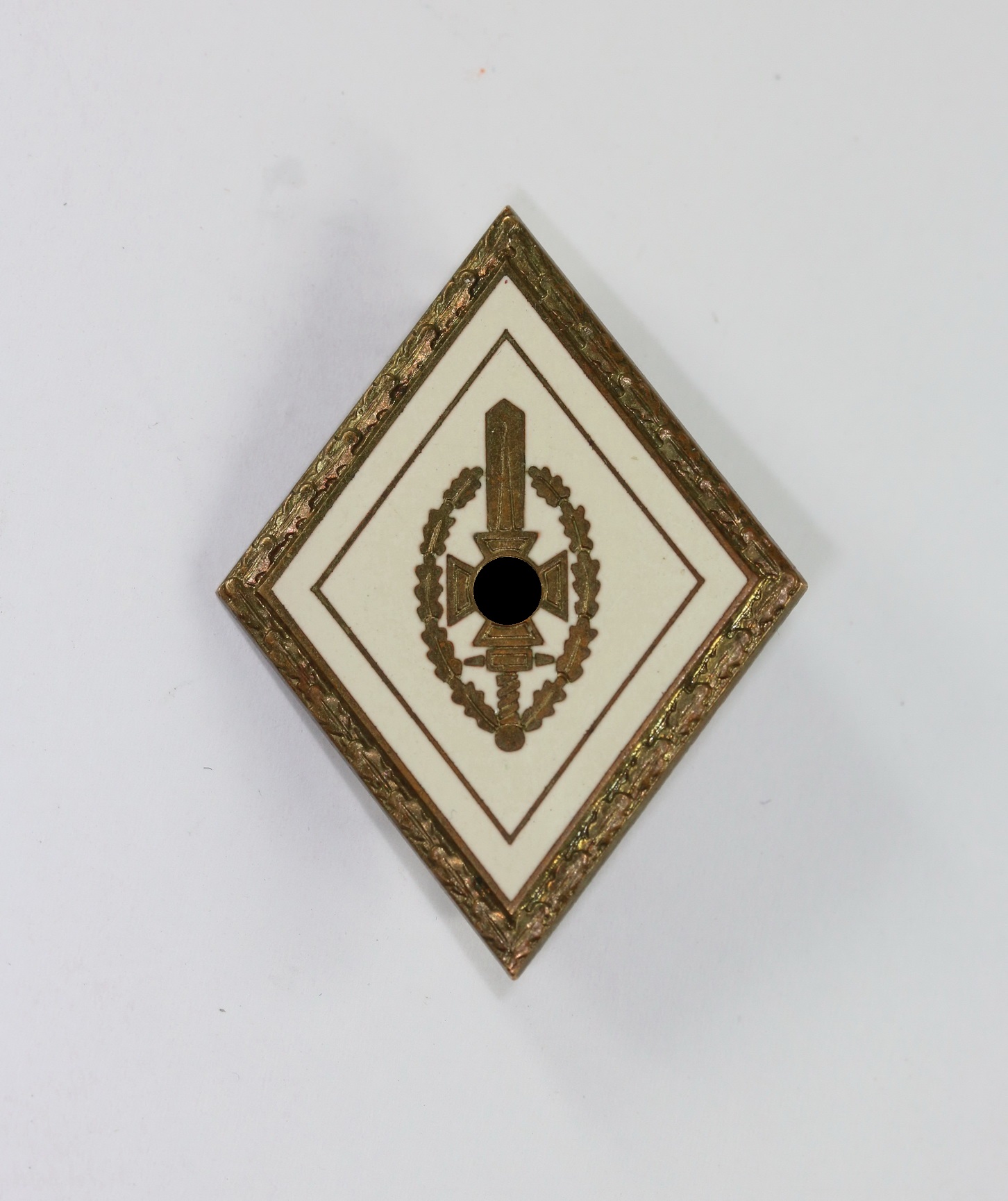 Buntmetall vergoldet, weiß-blau emailliert. Sehr guter, nahe zu ungetragener Zustand. Die Emaille ohne Fehler.Ohne Hersteller, aber eine bekannte Variante.
