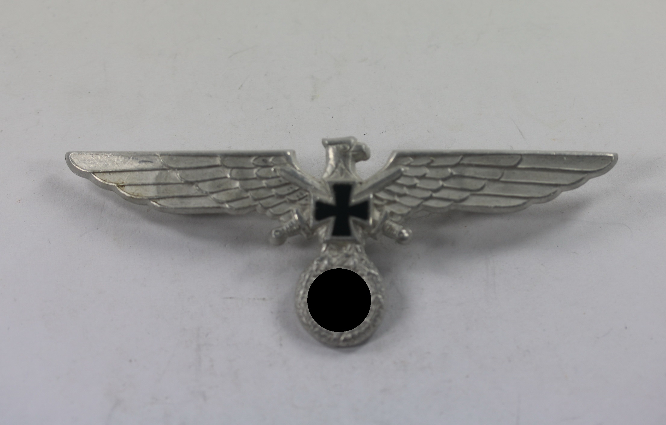 Aluminium, teilweise emailliert, excellenter, ungetragener Zustand. Die Emaille ohne Fehler. Rückseitig „5“ und „Ges. Gesch.“.