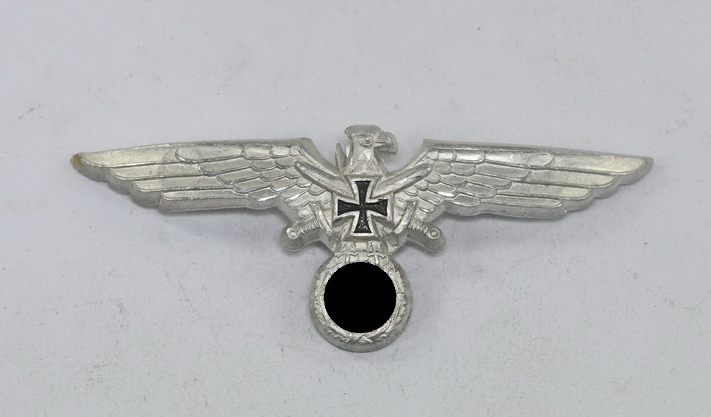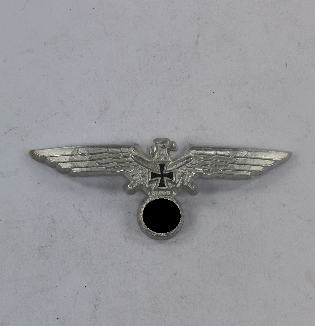 Der Mützenadler aus Aluminium, teilweise emailliert. Excellenter, ungetragener Zustand. Die Emaille ohne Fehler. Rückseitig „1“ und „Ges. Gesch.“. Die drei Splinte vollständig und einwandfrei.
