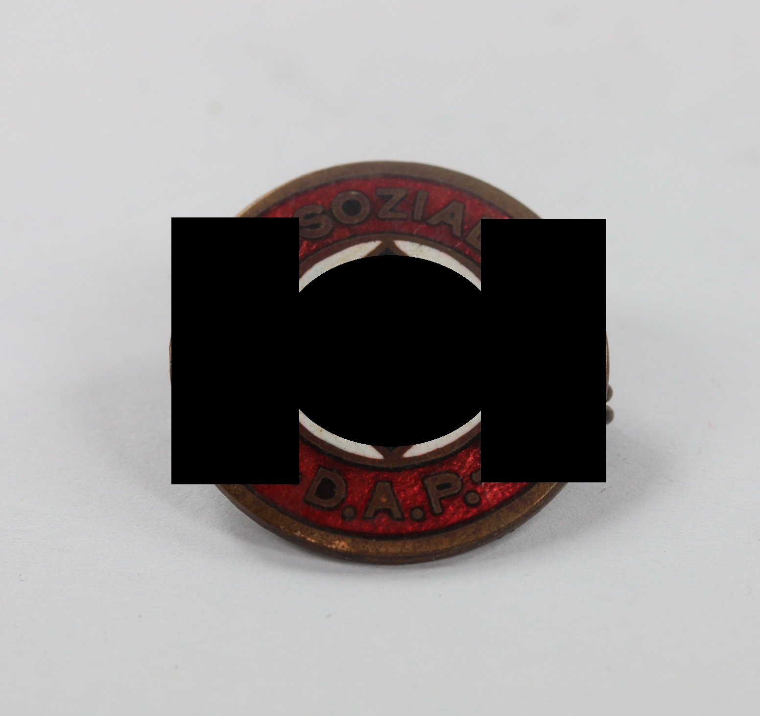 Buntmetall emailliert, sehr guter, nur minimal getragener Zustand. Die Emaille ohne Fehler. Markiert mit „Ges. Gesch.“.