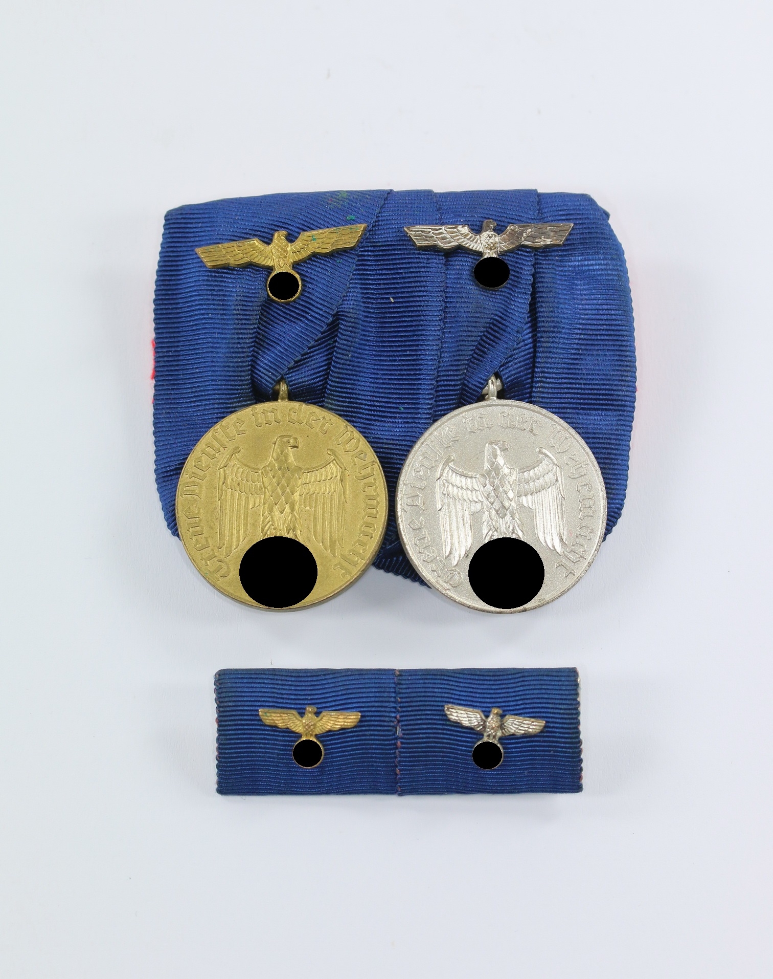 – Wehrmachtsdienstauszeichnung für 4 Jahre aus versilberten Eisen. Mit aufgelegten Band Adler