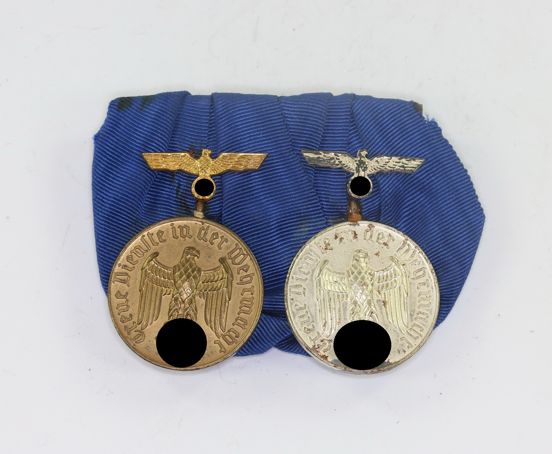 – Wehrmachtsdienstauszeichnung für 12 Jahre, Eisen vergoldet, mit auf den Band aufgelegten Adler aus vergoldeten Eisen