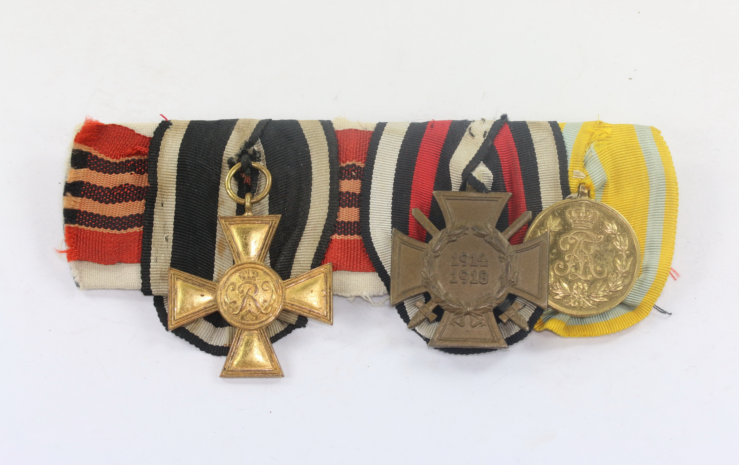 Sehr guter, stärker getragener Zustand. An zwei Stellen fehlen Orden und Bänder.