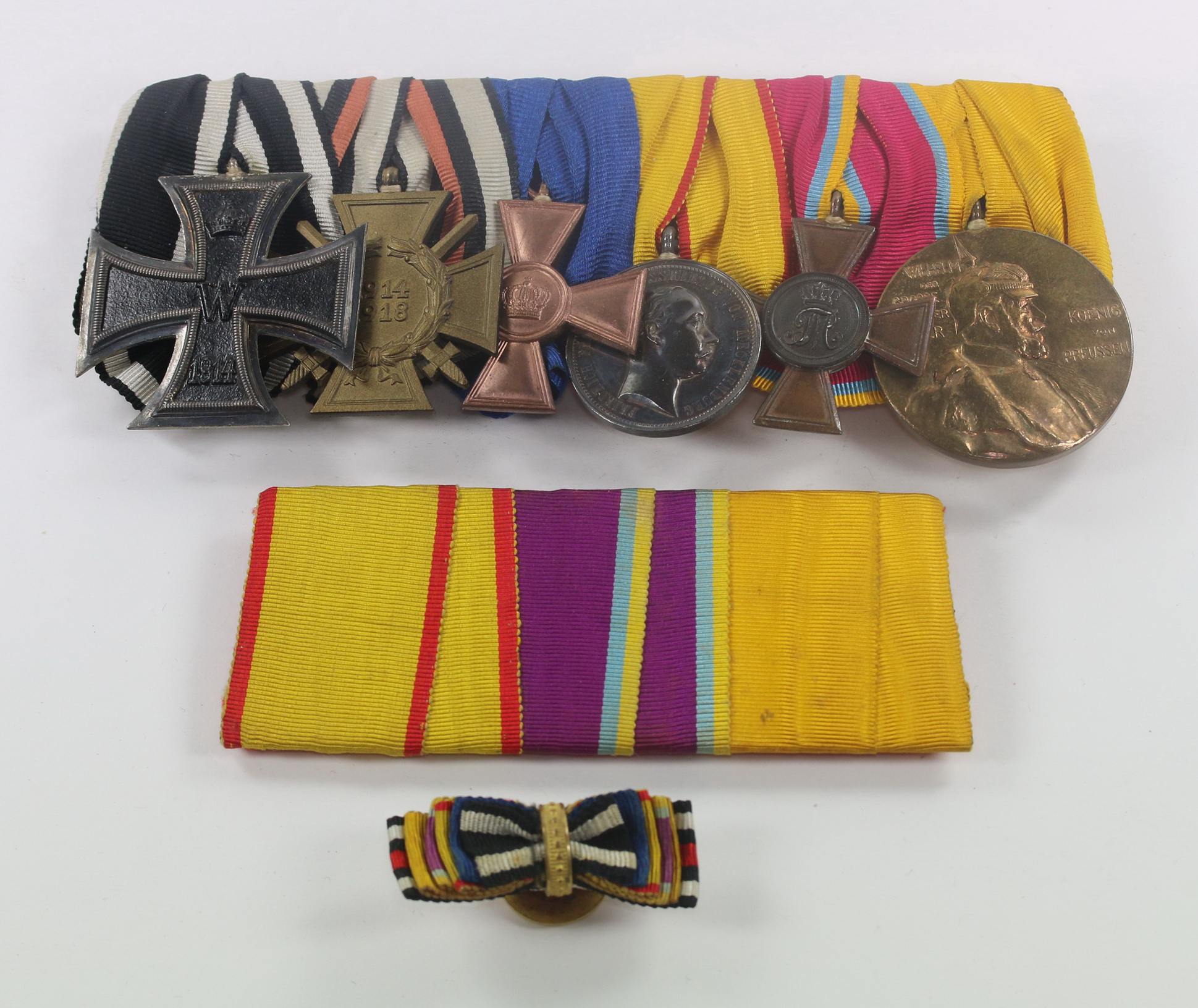 Alles in einen sehr guten, nur minimal getragener Zustand. Große Ordensschnalle + Knopflochdekoration + Blech mit Bändern der Schnalle vor den 1. Weltkrieg.