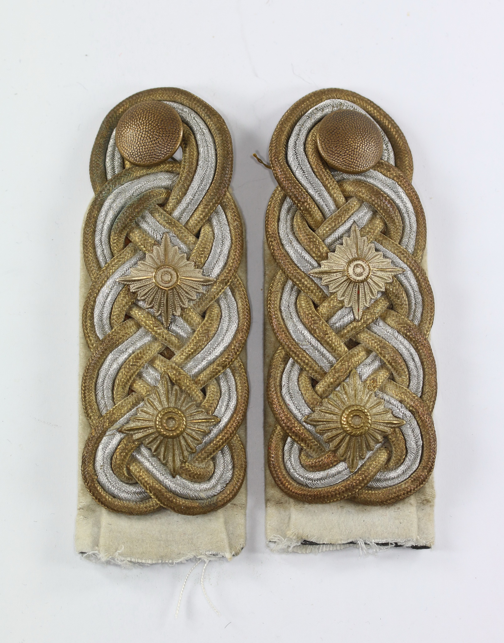 Schweres Silber/Gold Geflecht (um 1940) auf weißen Tuch. Sehr guter, minimal getragener Zustand. Zum einnähen.