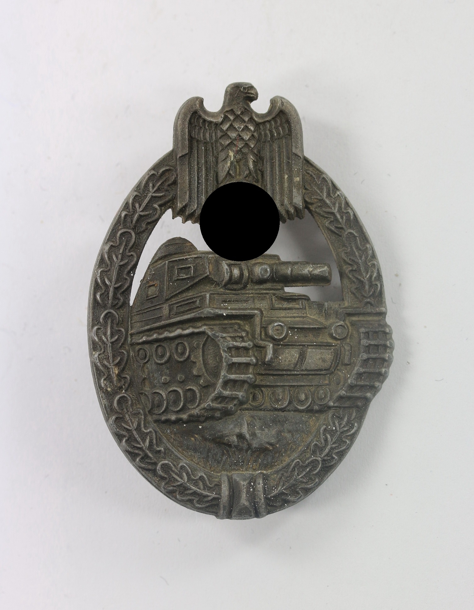 Zink, sehr guter, leicht getragener Zustand. Mit noch schöner Bronzierung. Ohne Hersteller, aber eine bekannte Variante, die als „Scooped out Flat Back“ bekannt ist. Siehe Philippe de Bock, The German Panzer Assault Badge