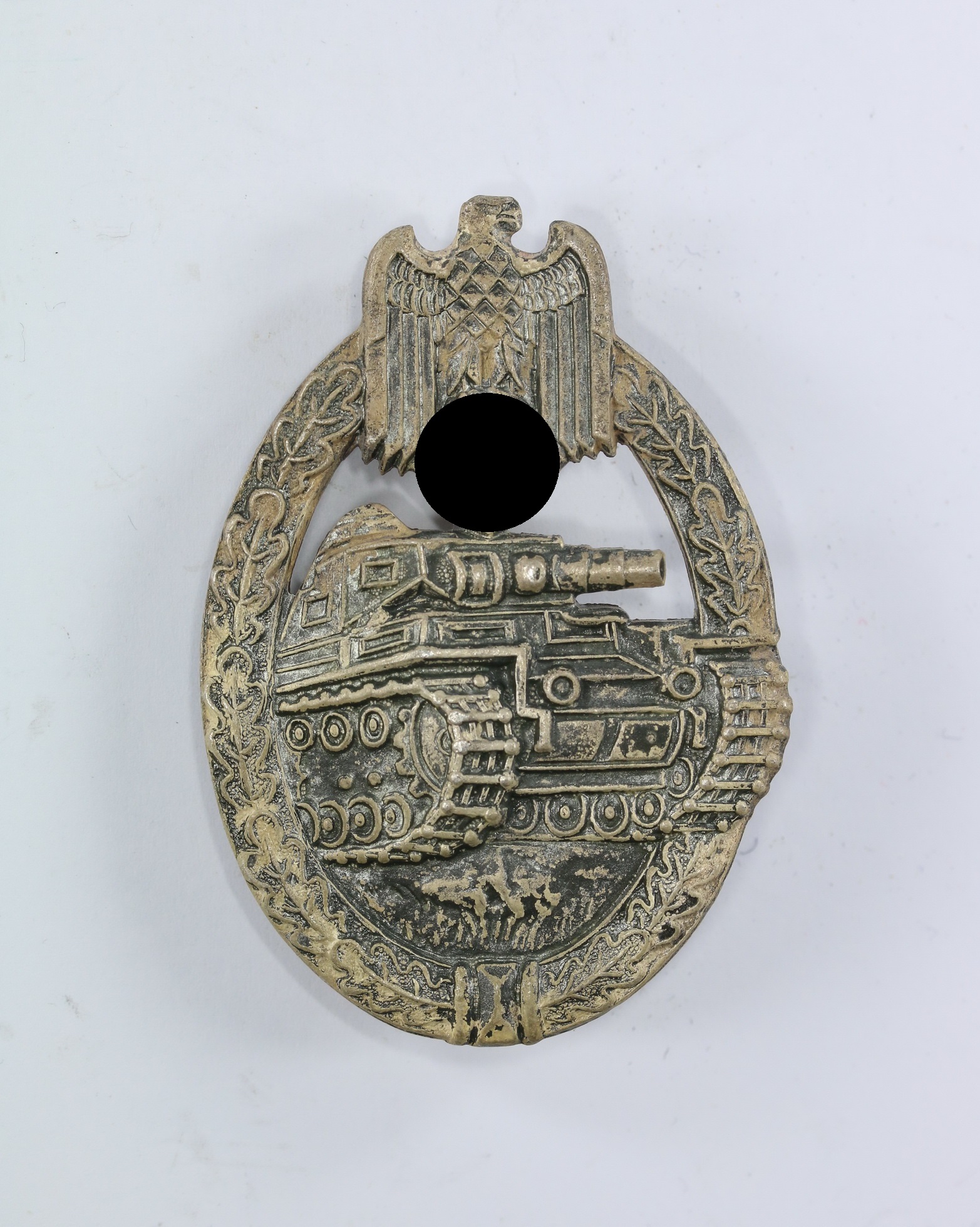 Zink, sehr guter, ungetragener Zustand. Mit vollständiger Versilberung, teilweise mit Patina. Ohne Hersteller, aber eine bekannte Variante, die als „Dishback“ bekannt ist. Siehe auch Philippe de Bock, The German Panzer Assault Badge, S. 598/599, Typ 5.13.1.