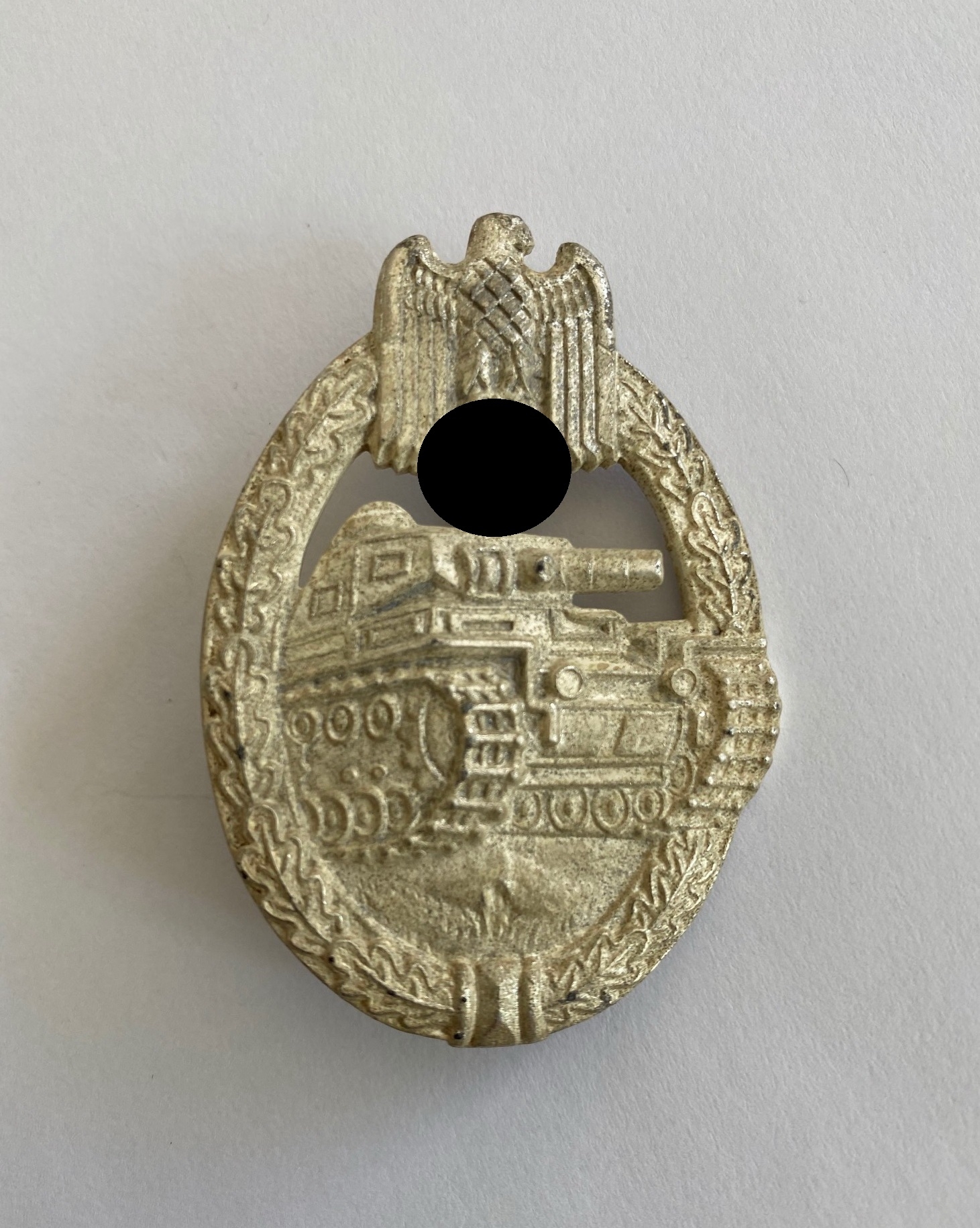 Zink, excellenter, ungetragener Zustand. Mit vollständiger Versilberung. Mit Hersteller „R.S.“ für die Firma Rudolf Souval, Wien. Siehe Philippe de Bock, The German Panzer Assault .