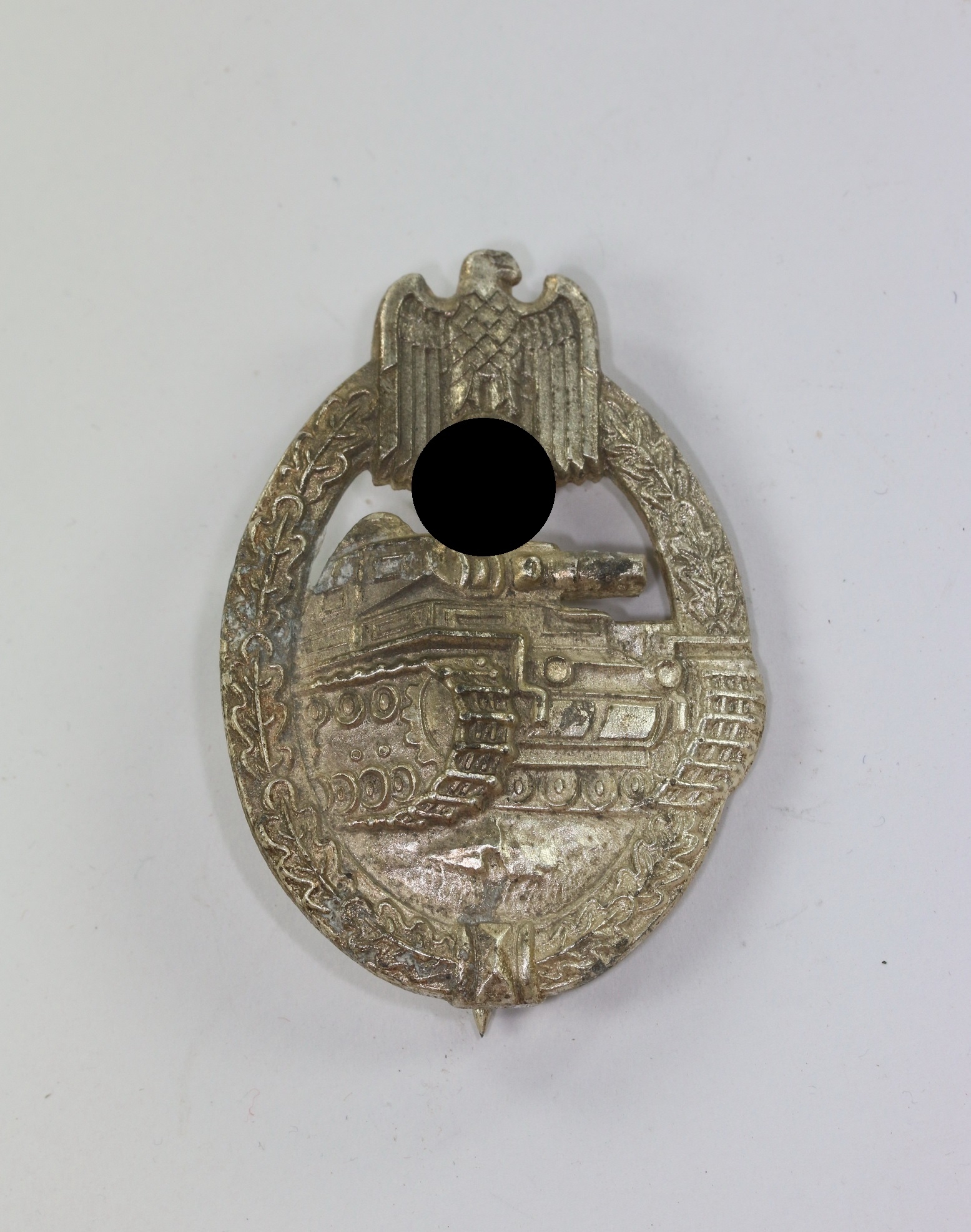 Zink, sehr guter, ungetragener Zustand. Mit vollständiger Versilberung. Mit Hersteller „R.S.“ für die Firma Rudolf Souval, Wien. Siehe Philippe de Bock, The German Panzer Assault .