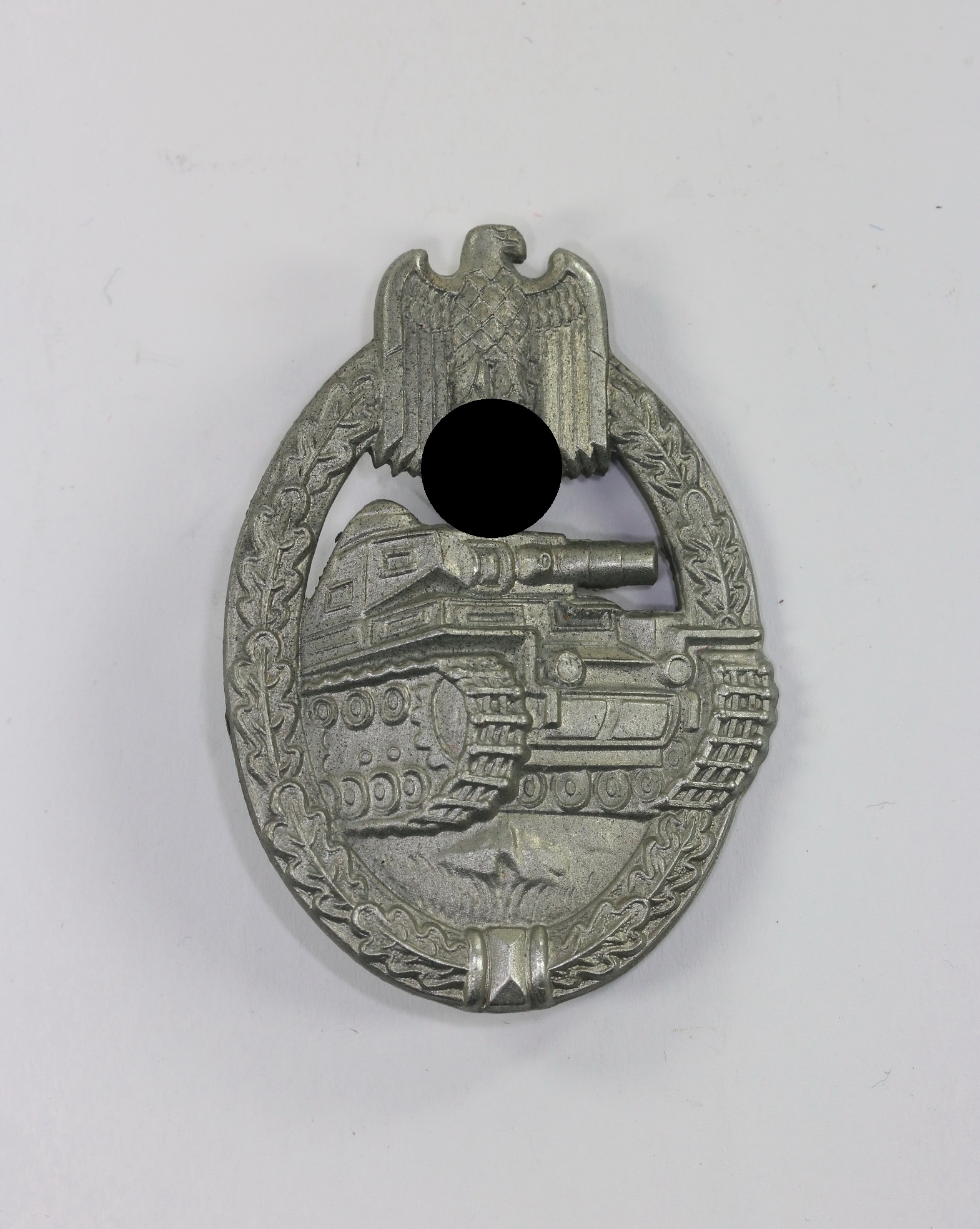 Zink, sehr guter, ungetragener Zustand. Mit vollständiger Versilberung. Mit Hersteller „ÜÜ“ für die Firma E.F. Wiedmann, Frankfurt am Main. Siehe Philippe de Bock, The German Panzer Assault Badge.