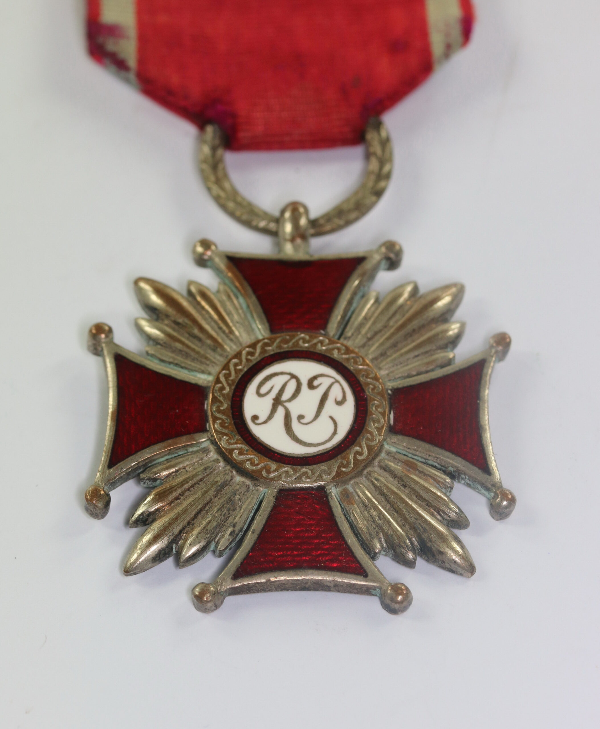 Silber, teilweise rot Emailliert. Sehr guter, nur leicht getragener Zustand. Die Emaille ohne Fehler. Um 1920.