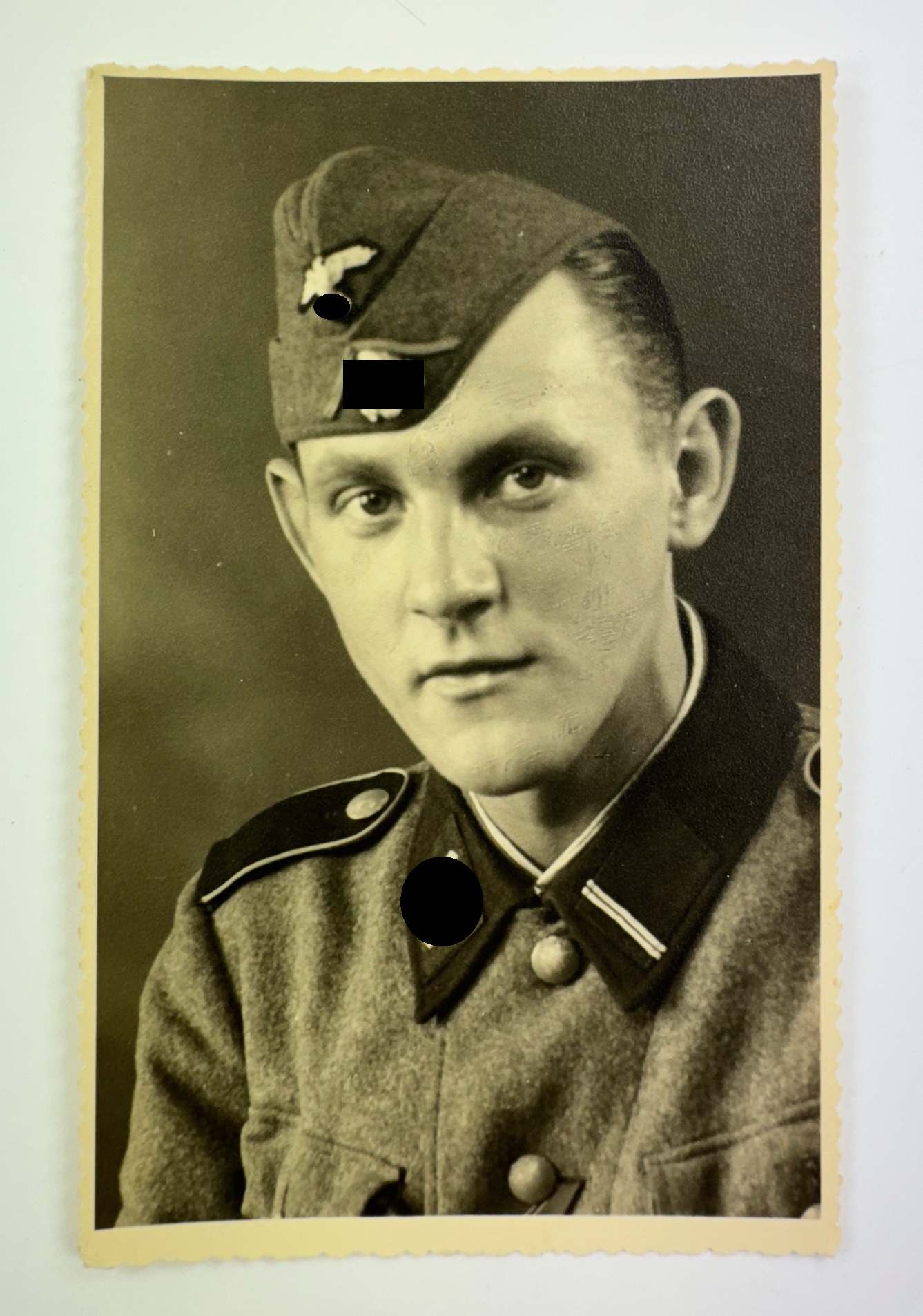 Sehr guter, nur leicht gebrauchter Zustand. Rückseitig mit Widmung. Maße ca. 85 x 135 mm.