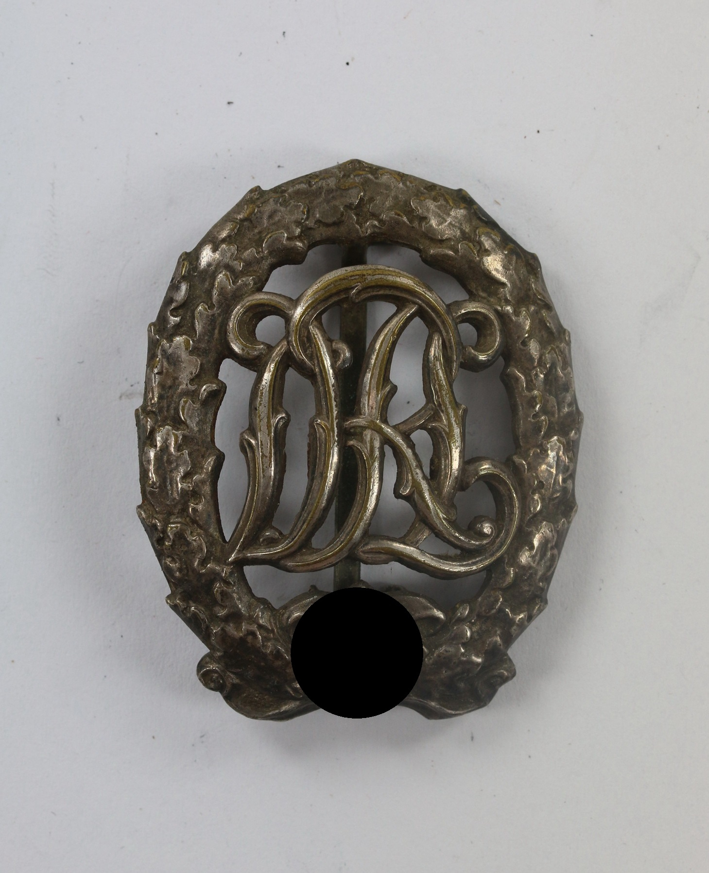 Buntmetall, sehr guter, leicht getragener Zustand, mit unberührter Patina. Vom Träger mit zusätzlicher nadelsicherung versehen(!). Mit Hersteller „Wernstein Jena“.