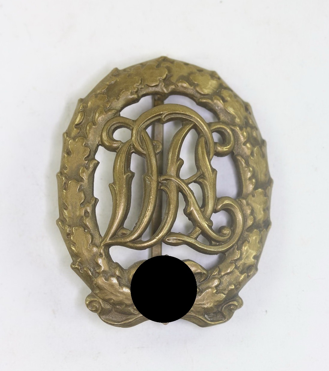 Das Sportabzeichen aus bronzierten Buntmetall. Sehr guter, nur leicht getragener Zustand. Rückseitig die Hersteller Markierung „Wernstein Jena“.