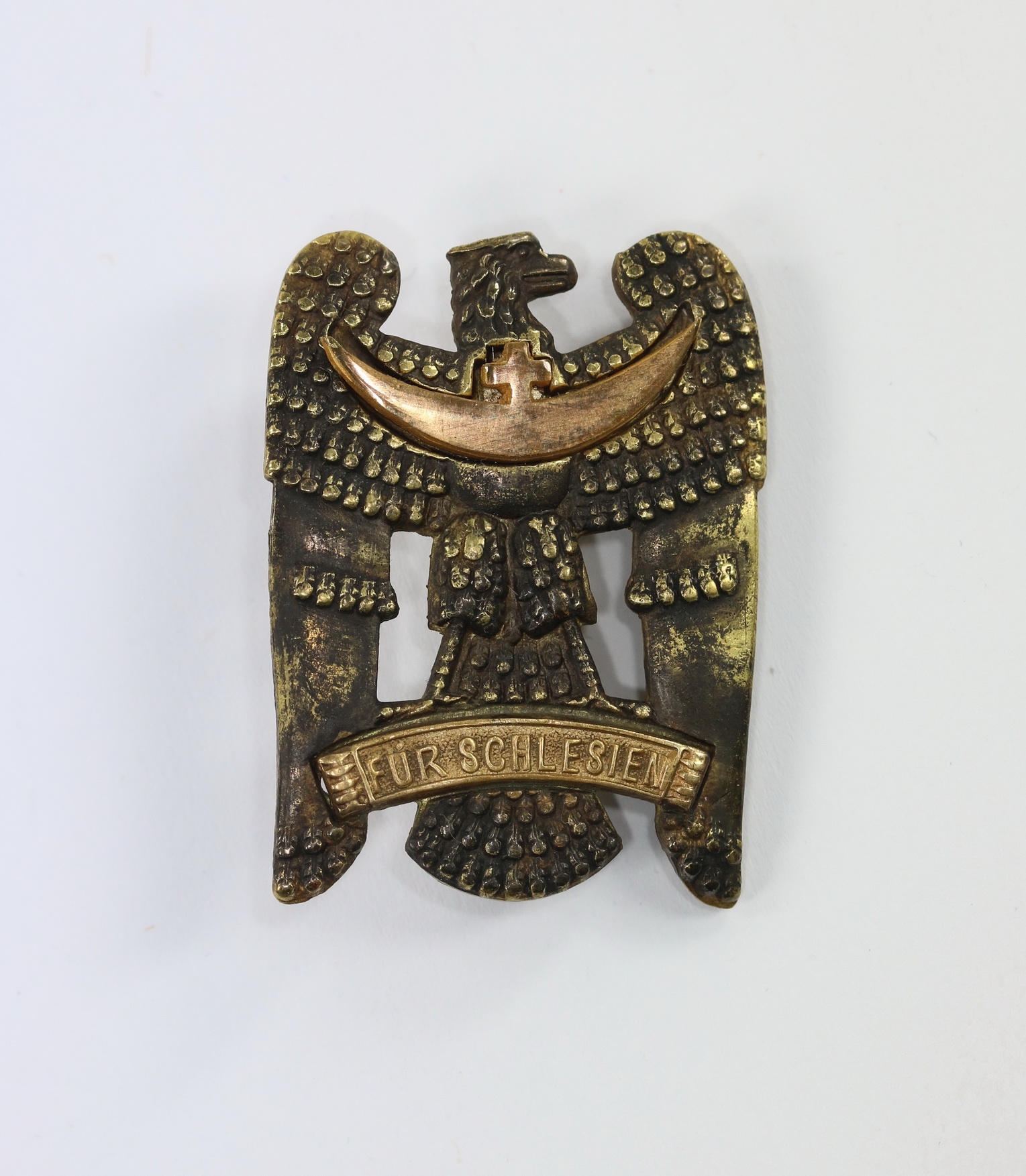 Buntmetall, geschwärzt, sehr guter, nur minimal getragener Zustand. Mit sehr schöner Schwärzung. Ohne Hersteller, aber eine bekannte Variante.