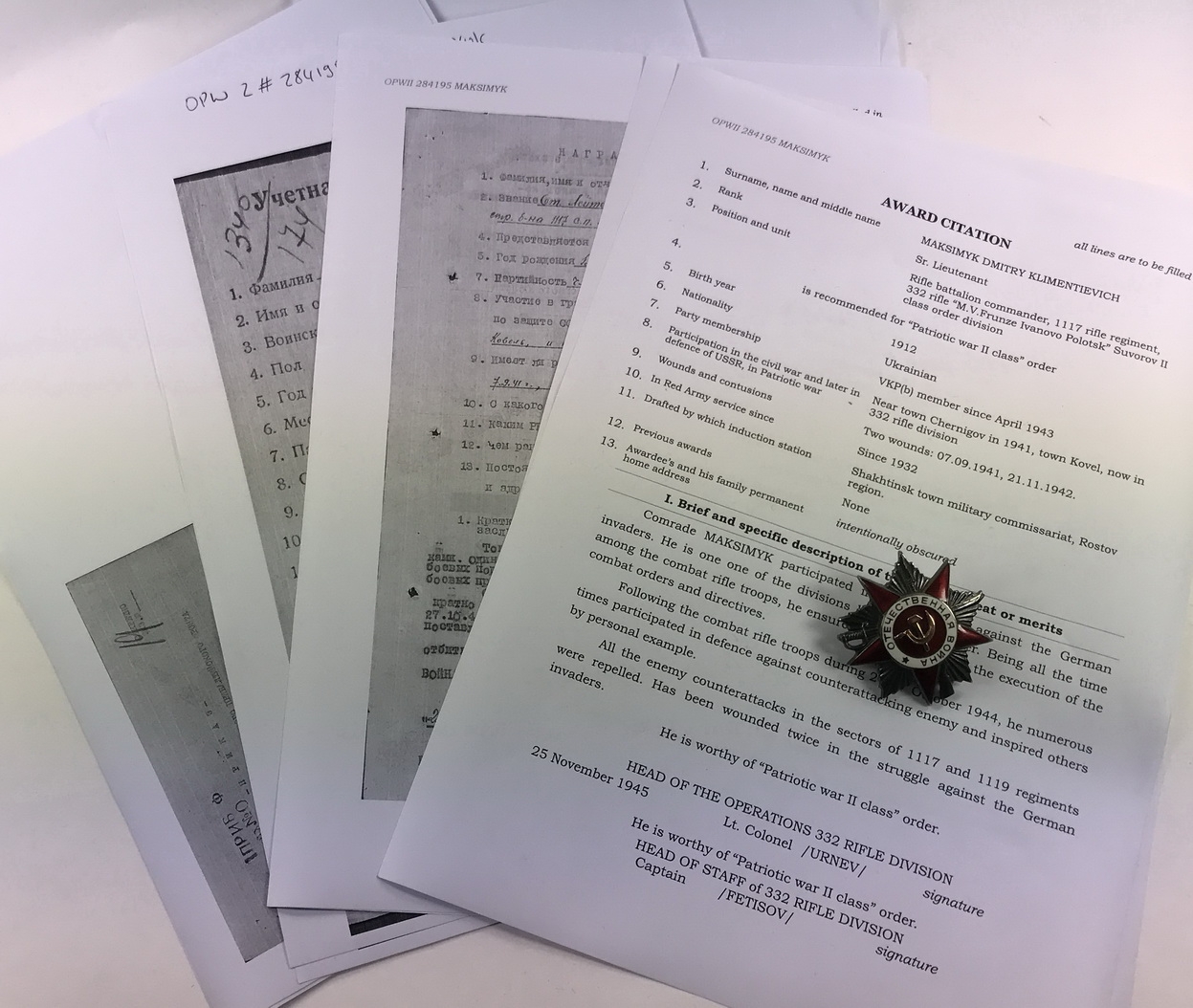 Dazu Fotokopien des russischen Archiv material, teilweise auf englisch übersetzt.