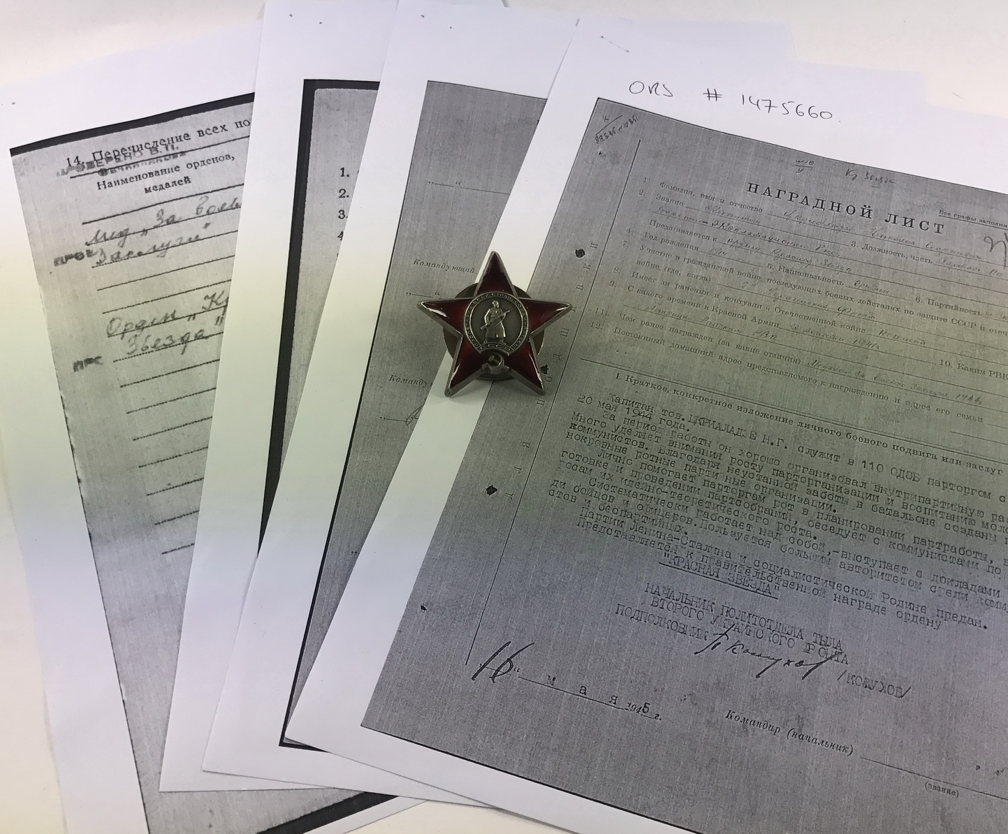 Mommy mit Forschungsmaterial aus dem russischen Archiv Bestehend aus Registerkarte, Auszeichnungsliste, Dekret und Verleihungsvorschlag..