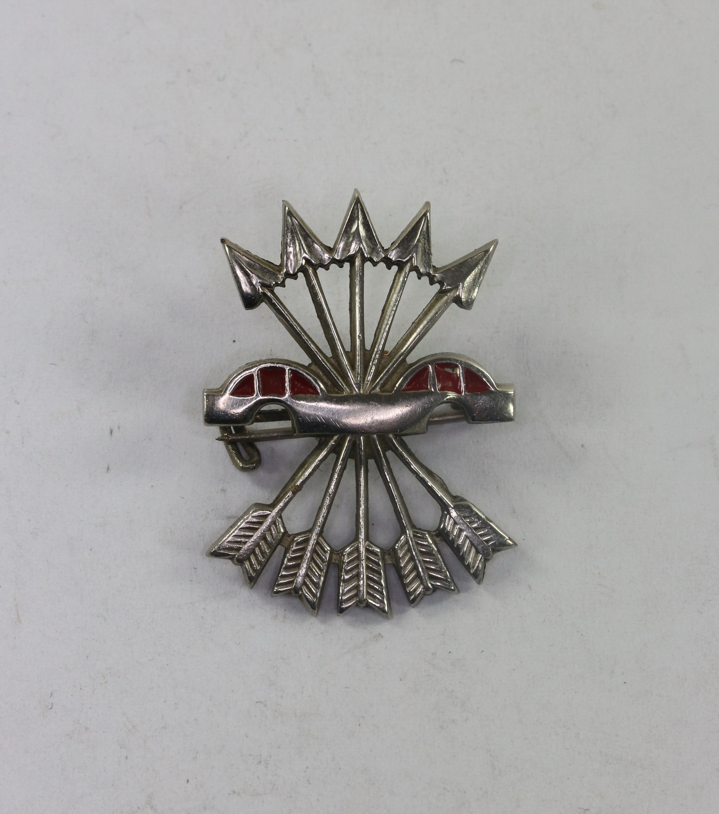 Buntmetall versilbert, sehr guter, leicht getragener Zustand. Maße ca. 35 x 25 mm.