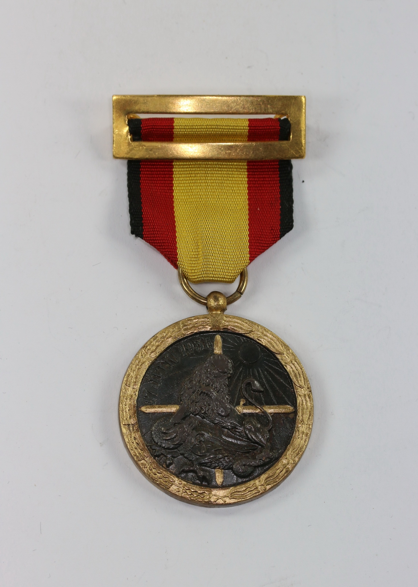 Buntmetall, sehr guter, nur minimal getragener Zustand. Mit typisch spanischer Tragenadel.