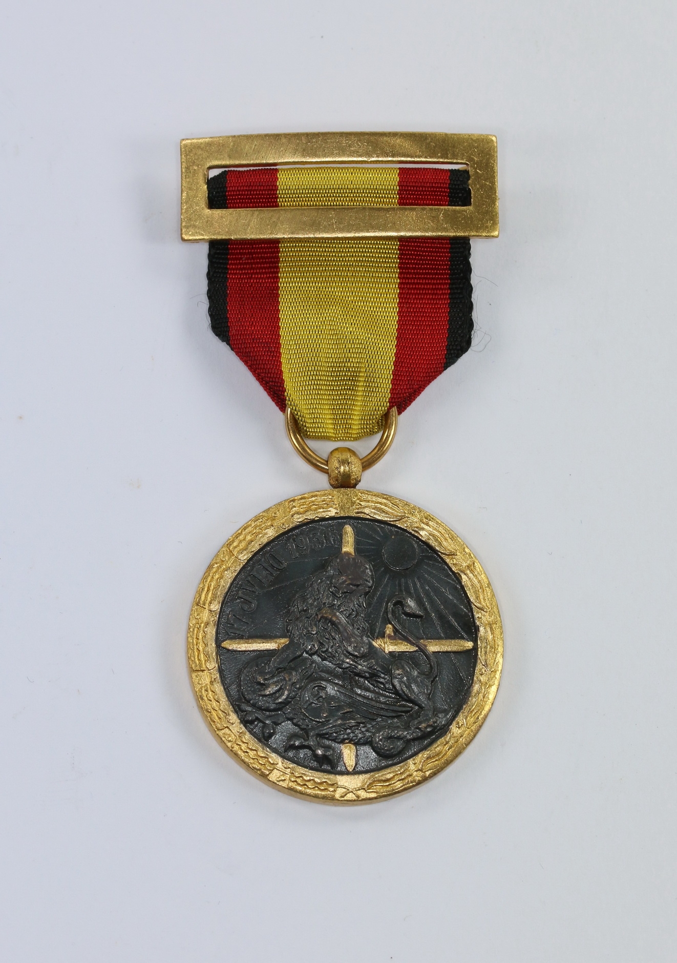 Buntmetall, sehr guter, nur minimal getragener Zustand. Mit typisch spanischer Tragenadel.