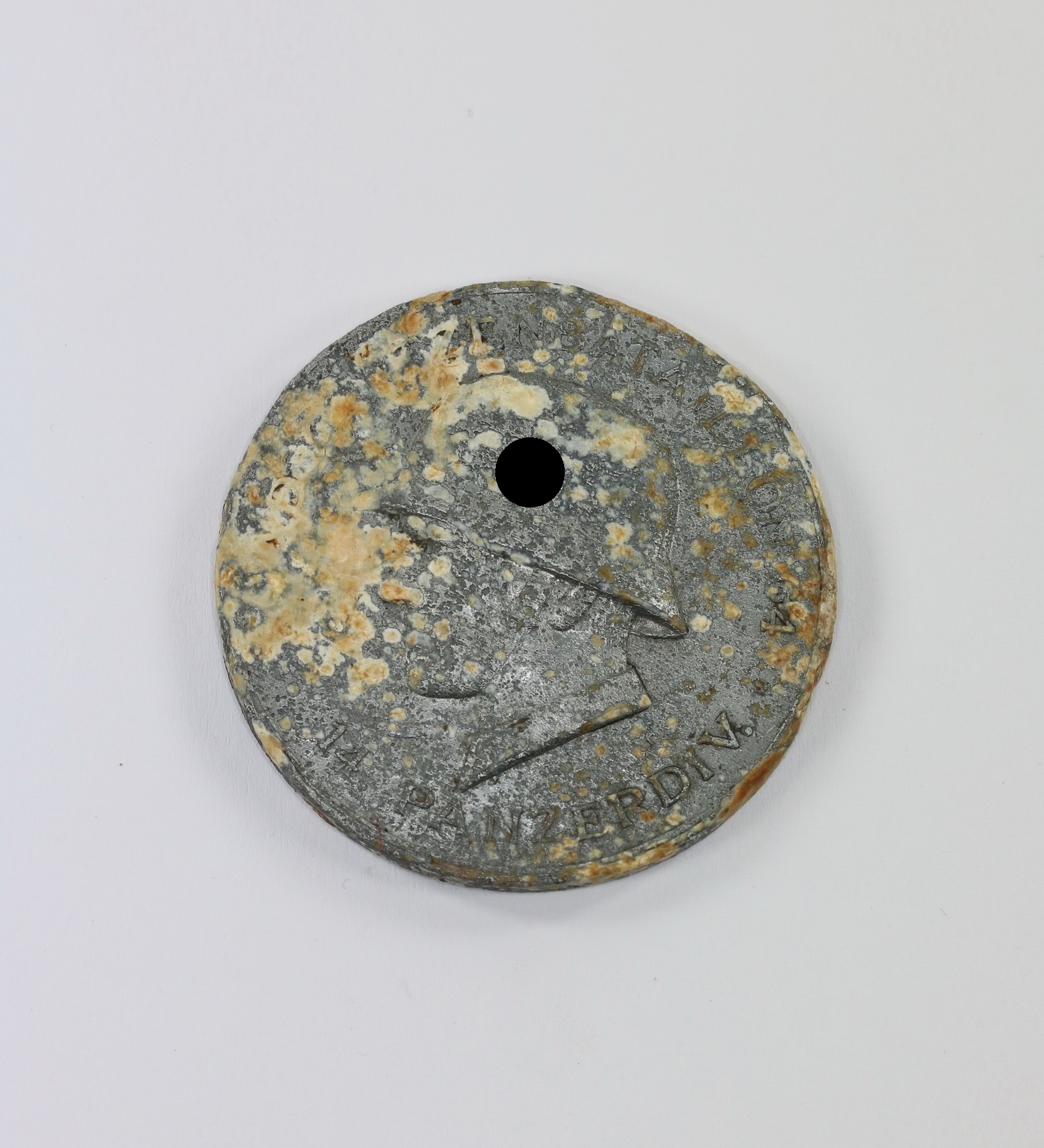 Zink, guter Zustand, mit Alters- und Lagerspuren. Durchmesser 50 mm.