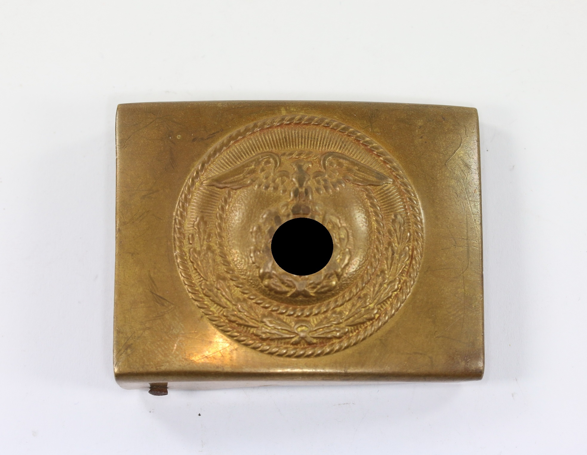 Messing durchgeprägt, mit auf der Spitze stehende Hakenkreuz. Sehr guter, leicht getragener Zustand. Ohne Hersteller, aber eine bekannte Variante.