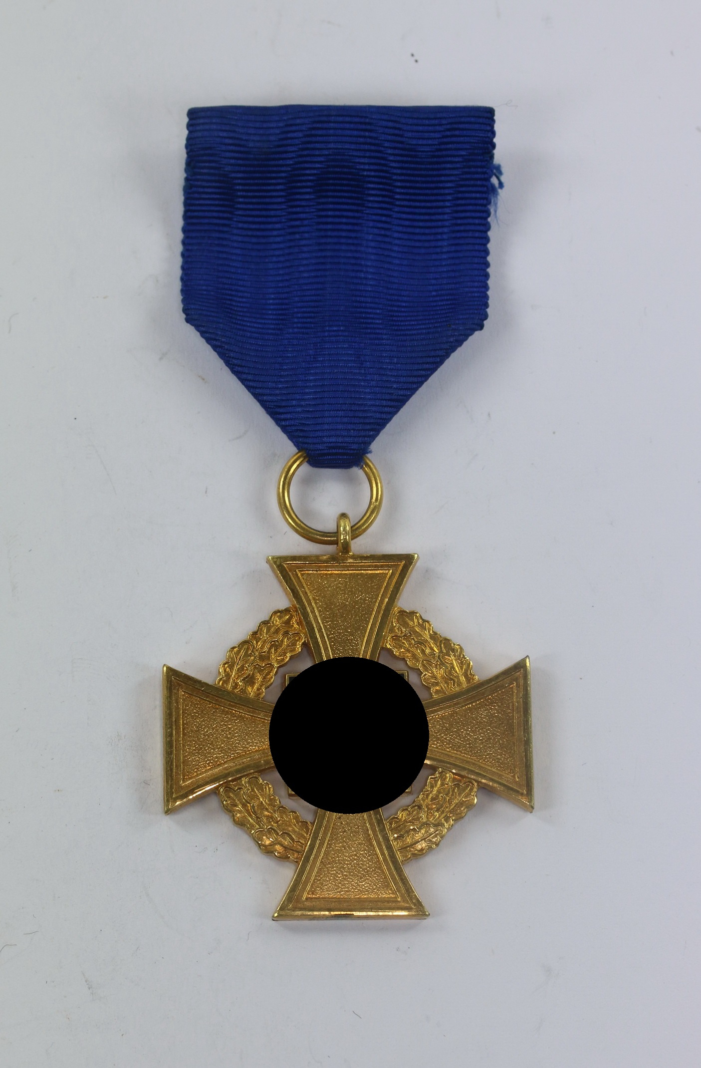 Sehr guter, nur leicht getragener Zustand. Mit vollständiger Vergoldung, die Emaille ohne Fehler. Am Band mit Tragenadel.