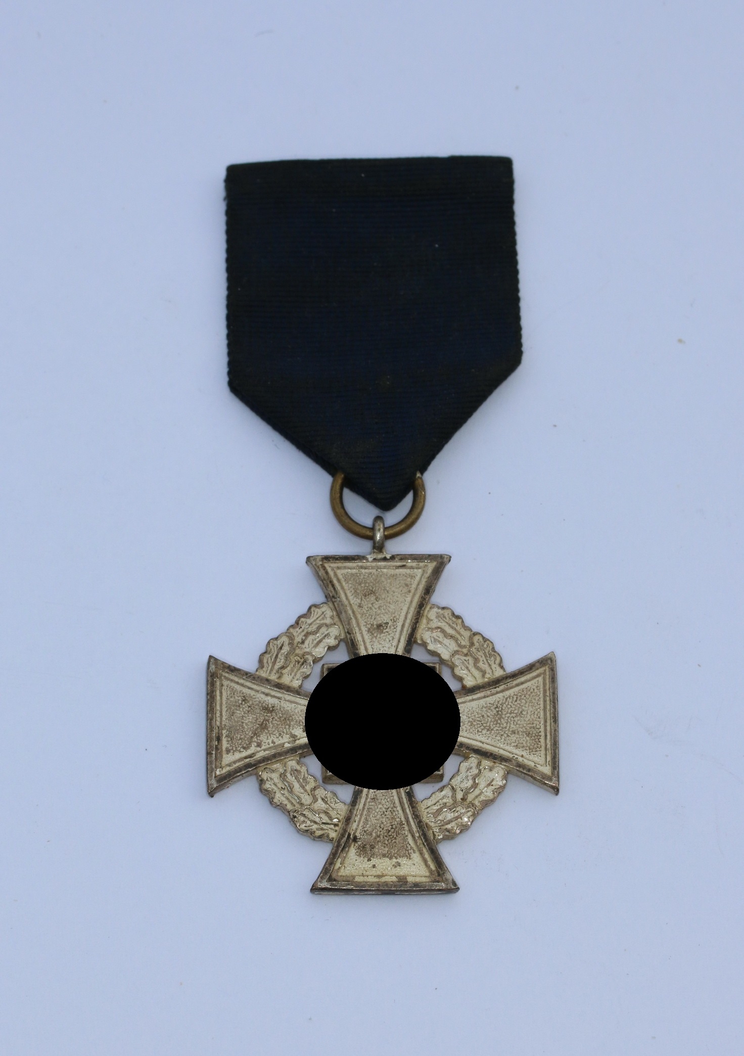 Sehr guter, leicht getragener Zustand. Mit vollständiger, frostiger Versilberung, die Emaille ohne Fehler. Am Band ohne Tragenadel.