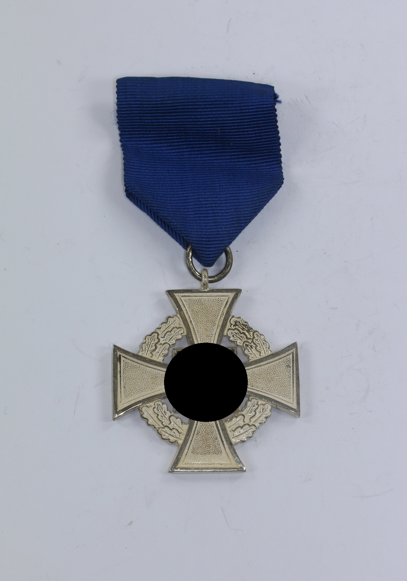 Sehr guter, nur leicht getragener Zustand. Mit vollständiger, frostiger Versilberung, die Emaille ohne Fehler. Mit Band mit vernähter Tragenadel.