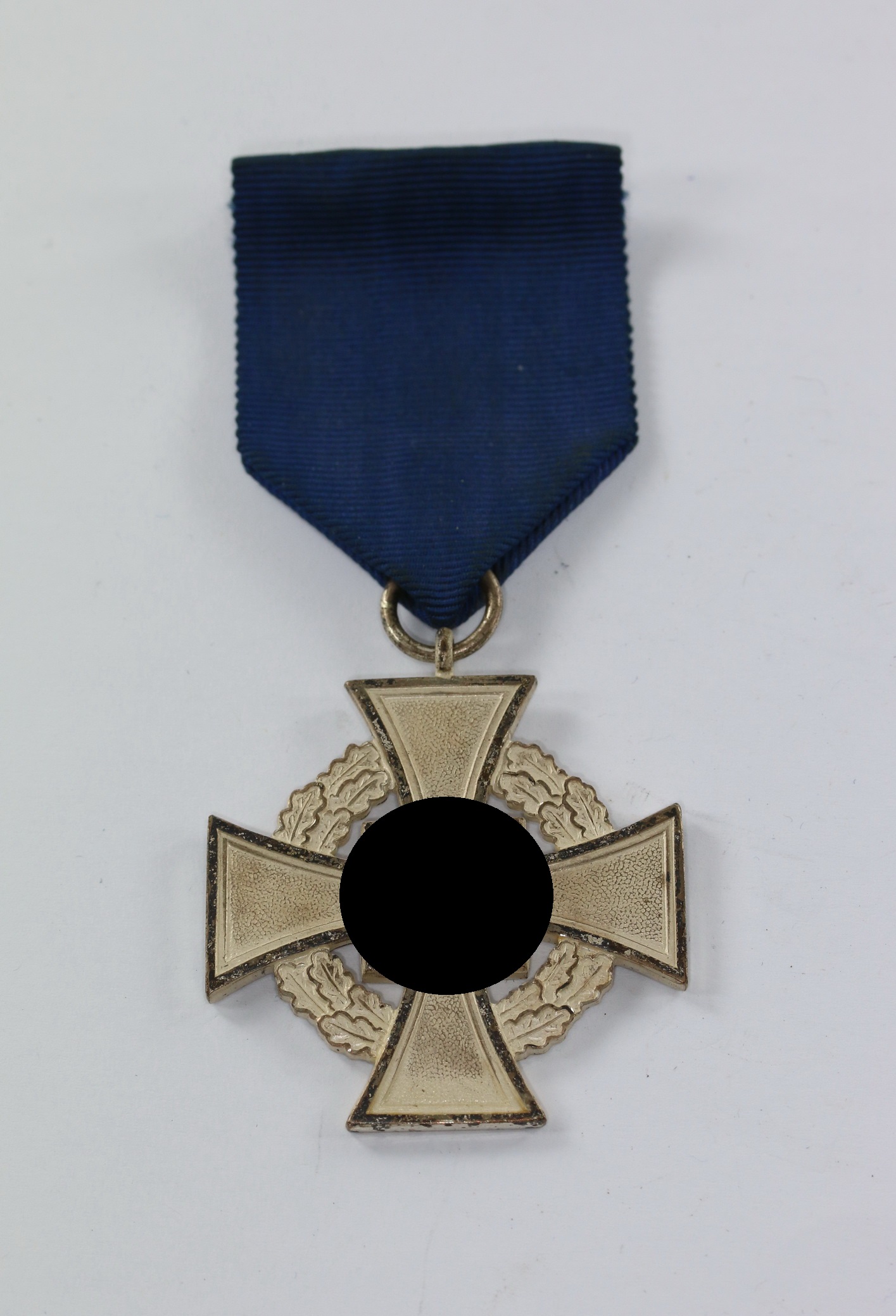 Sehr guter, ungetragener Zustand. Mit vollständiger, frostiger Versilberung, die Emaille ohne Fehler. Am Band mit Tragenadel.