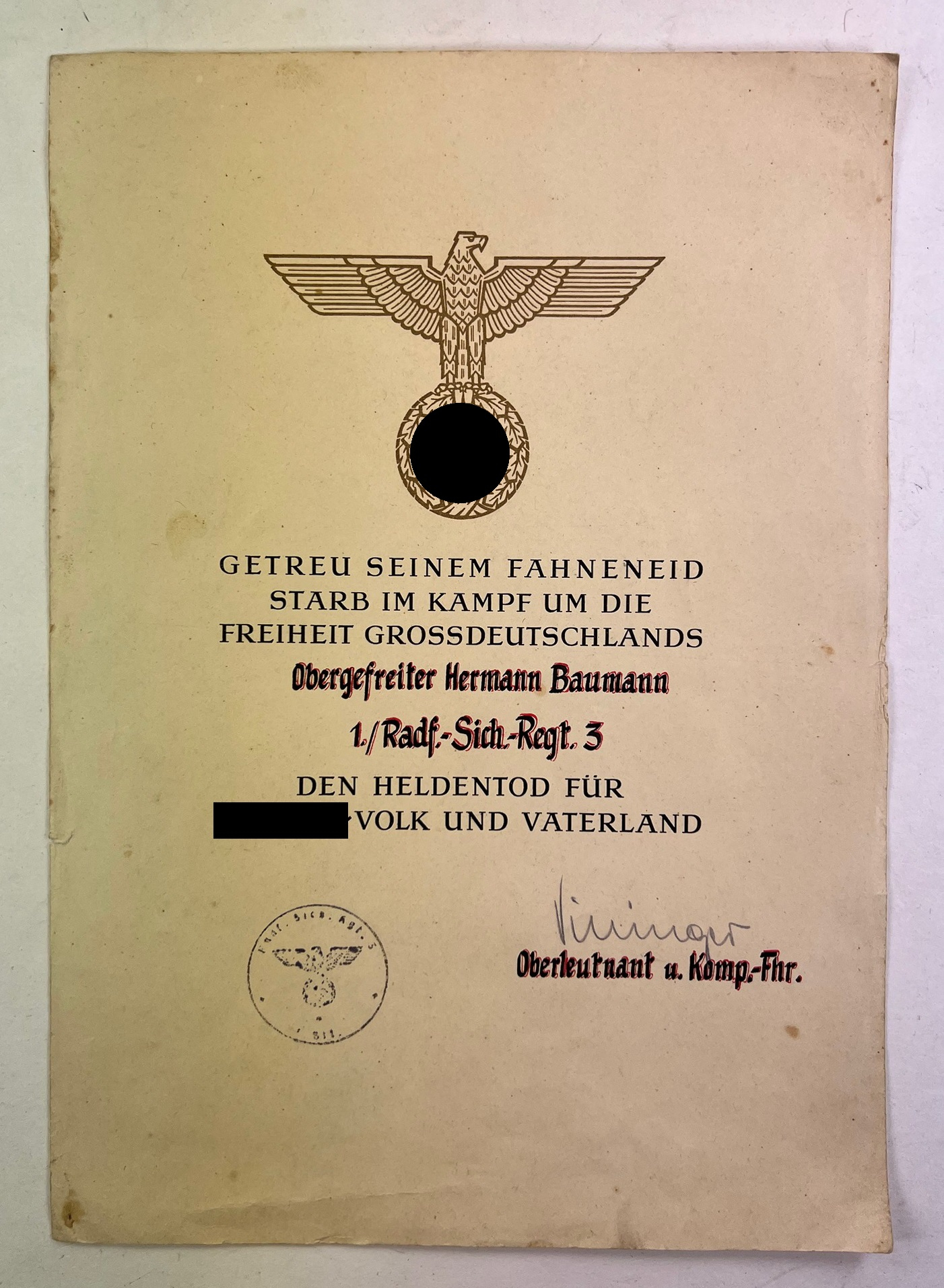 Urkunde Heldentod